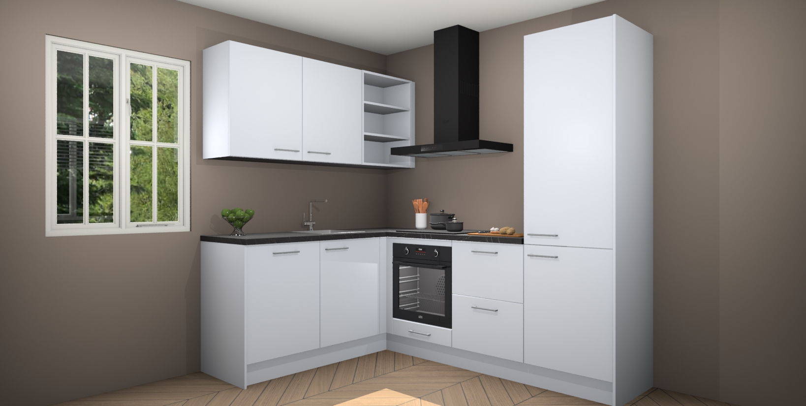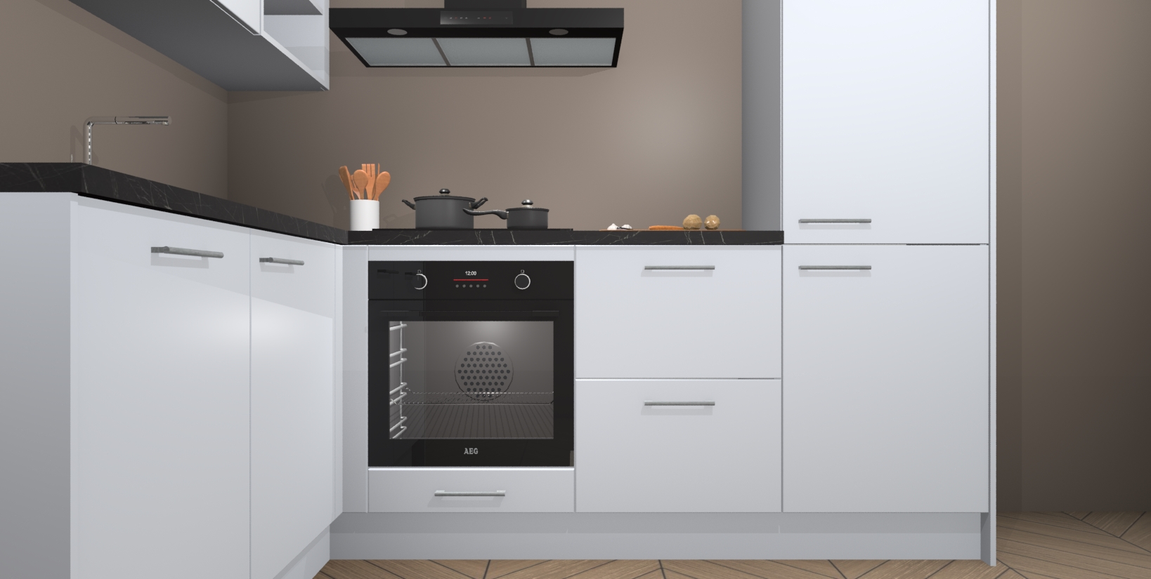 Voor nog meer gemak heeft deze keuken vijf ingebouwde apparaten - oven, inductiekookplaat, afzuigkap, vaatwasser en koelkast. Bovendien hebben alle kasten softclose deuren voor extra comfort bij het sluiten. Dit alles voor een verrassend lage vaste prijs - u vindt nergens anders een betere deal!