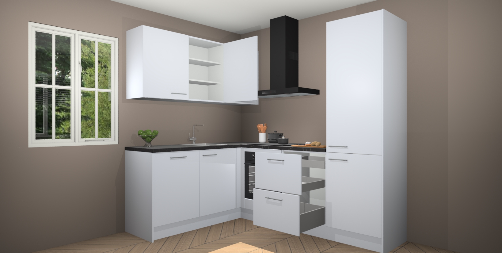 Maak kennis met de Sneeuwwitte keuken Boekarest, een moderne hoekkeuken waar al uw vrienden en familie jaloers op zullen zijn! Het verbluffende mooie ontwerp past in elk interieur en is een ideale keuze voor wie op zoek is naar een klassieke, maar verfijnde look.