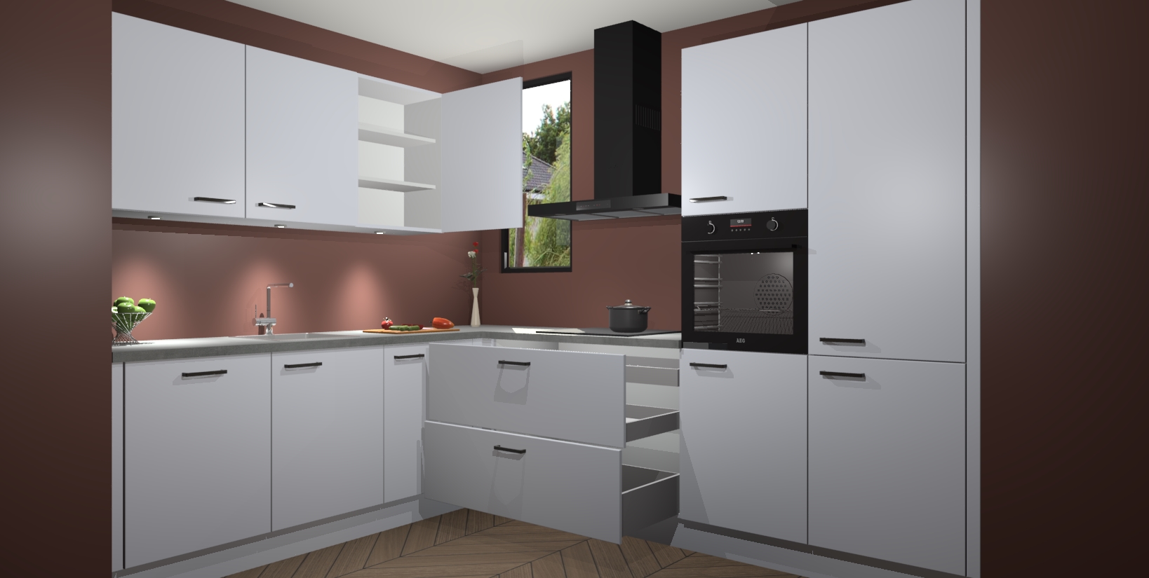 De ruime opbergruimte van dit model maakt het bereiden van voedsel en het gebruik van apparaten snel en gemakkelijk. Het beste van alles is dat het wordt geleverd met vijf inbouwapparaten: een oven, inductiekookplaat, afzuigkap, vaatwasser en koelkast - die allemaal gemakkelijk kunnen worden opgewaardeerd naar AEG na aankoop. Wat de gemaksfactor nog groter maakt, is het feit dat alle cabines voorgemonteerd worden geleverd, zodat u er meteen mee aan de slag kunt!