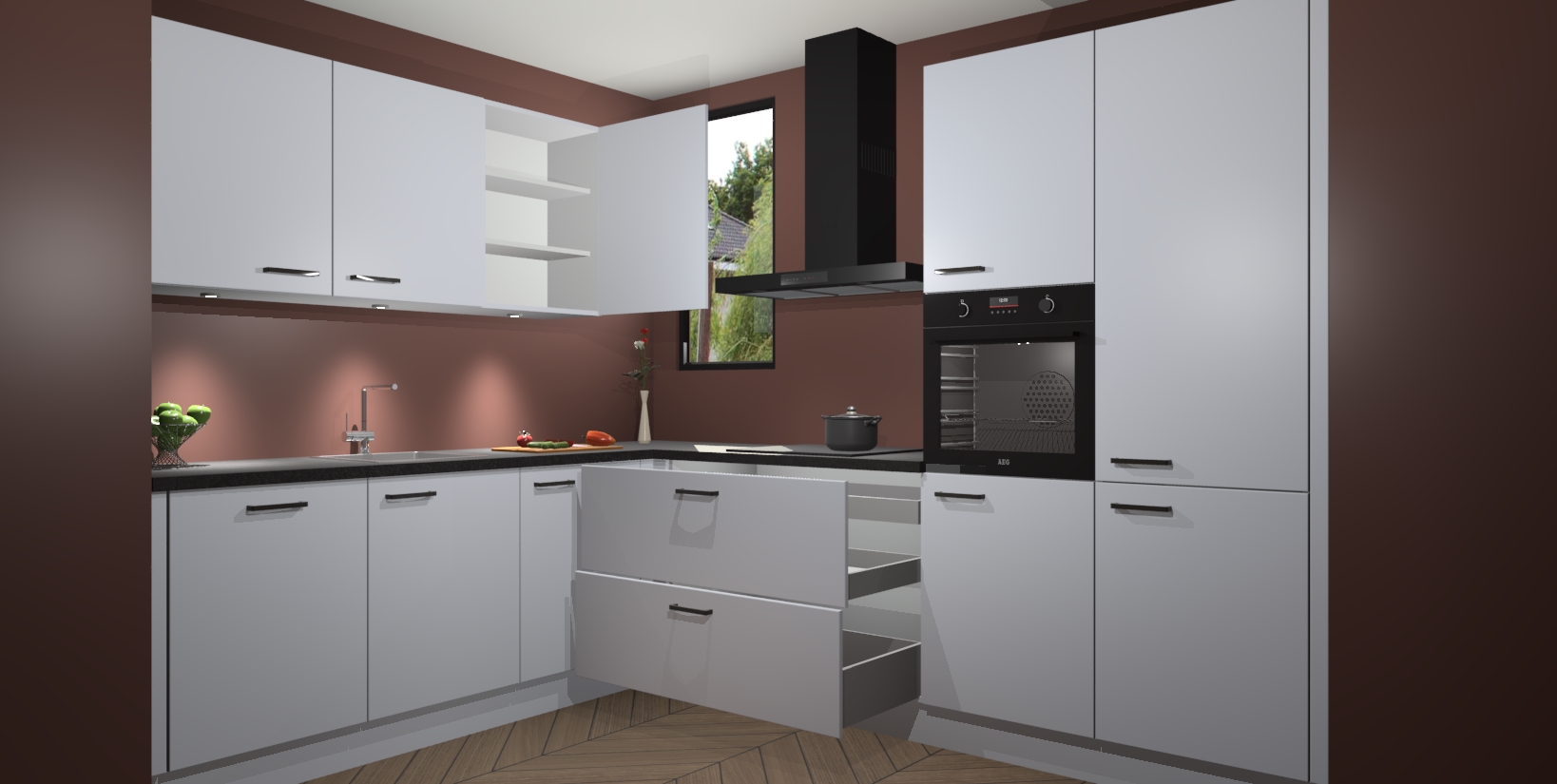 De ruime opbergruimte van dit model maakt het bereiden van voedsel en het gebruik van apparaten snel en gemakkelijk. Het beste van alles is dat het wordt geleverd met vijf inbouwapparaten: een oven, inductiekookplaat, afzuigkap, vaatwasser en koelkast - die allemaal gemakkelijk kunnen worden opgewaardeerd naar AEG na aankoop. Wat de gemaksfactor nog groter maakt, is het feit dat alle cabines voorgemonteerd worden geleverd, zodat u er meteen mee aan de slag kunt!