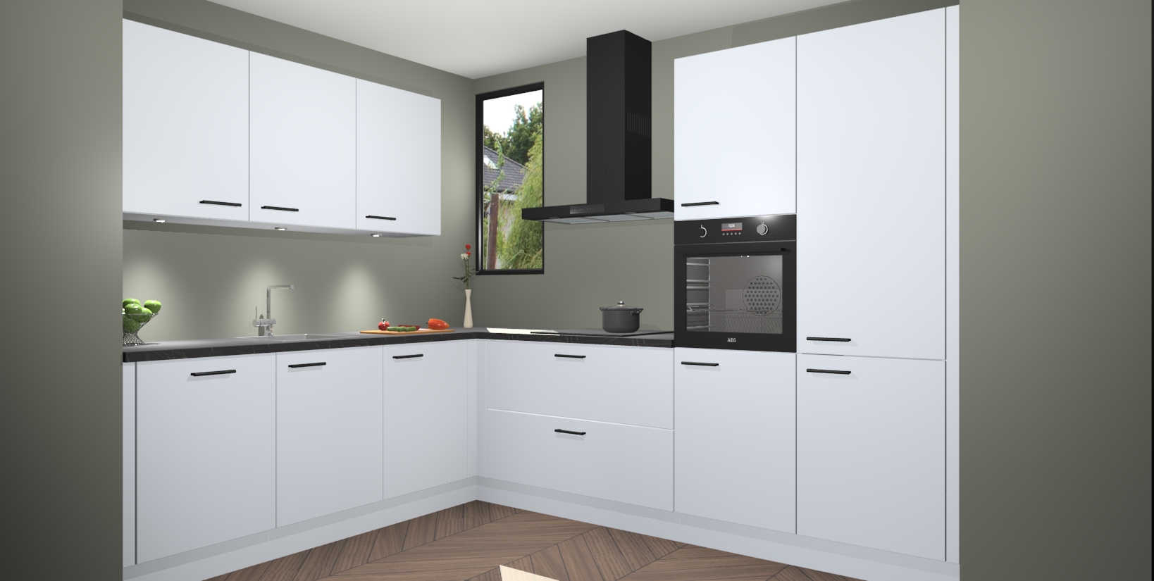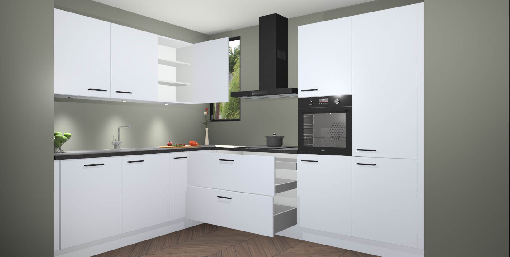 De ruime opbergruimte van dit model maakt het bereiden van voedsel en het gebruik van apparaten snel en gemakkelijk. Het beste van alles is dat het wordt geleverd met vijf inbouwapparaten: een oven, inductiekookplaat, afzuigkap, vaatwasser en koelkast - die allemaal gemakkelijk kunnen worden opgewaardeerd naar AEG na aankoop. Wat de gemaksfactor nog groter maakt, is het feit dat alle cabines voorgemonteerd worden geleverd, zodat u er meteen mee aan de slag kunt!