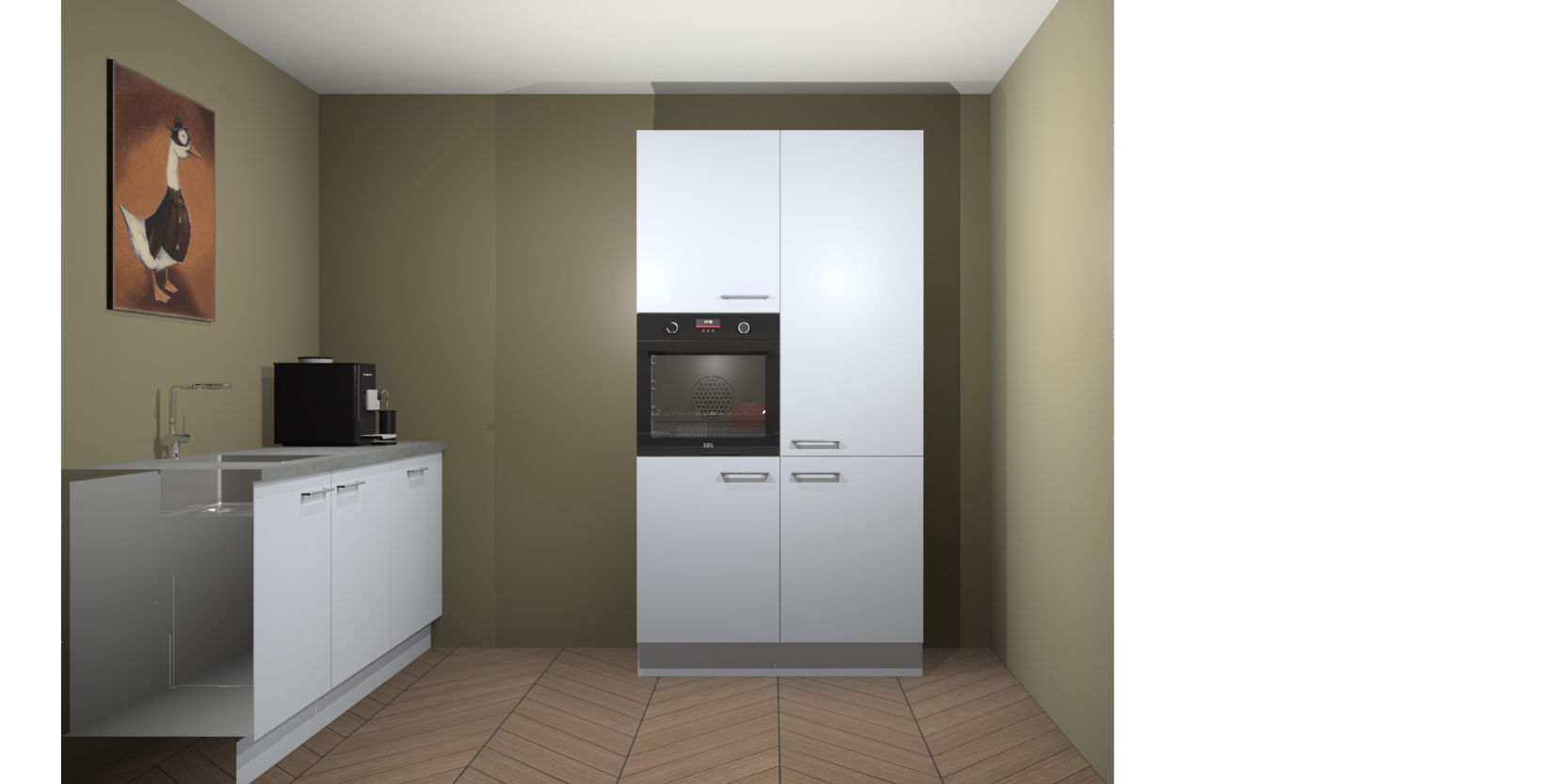 Met een modern, tijdloos design en ruime opslagruimte, zult u zich in no-time thuis voelen in uw nieuwe keuken. Uw leven wordt eenvoudiger met de soft-close deuren die voor het ultieme stille comfort zorgen - geen geluid dat u stoort terwijl u kookt. Ook is de keuken voorzien van 5 ingebouwde apparaten: een oven, inductie kookplaat, afzuigkap, vaatwasser en koelkast. Deze kunnen gemakkelijk na bestelling worden bijgewerkt naar AEG - waardoor uw luxe ervaring compleet is.