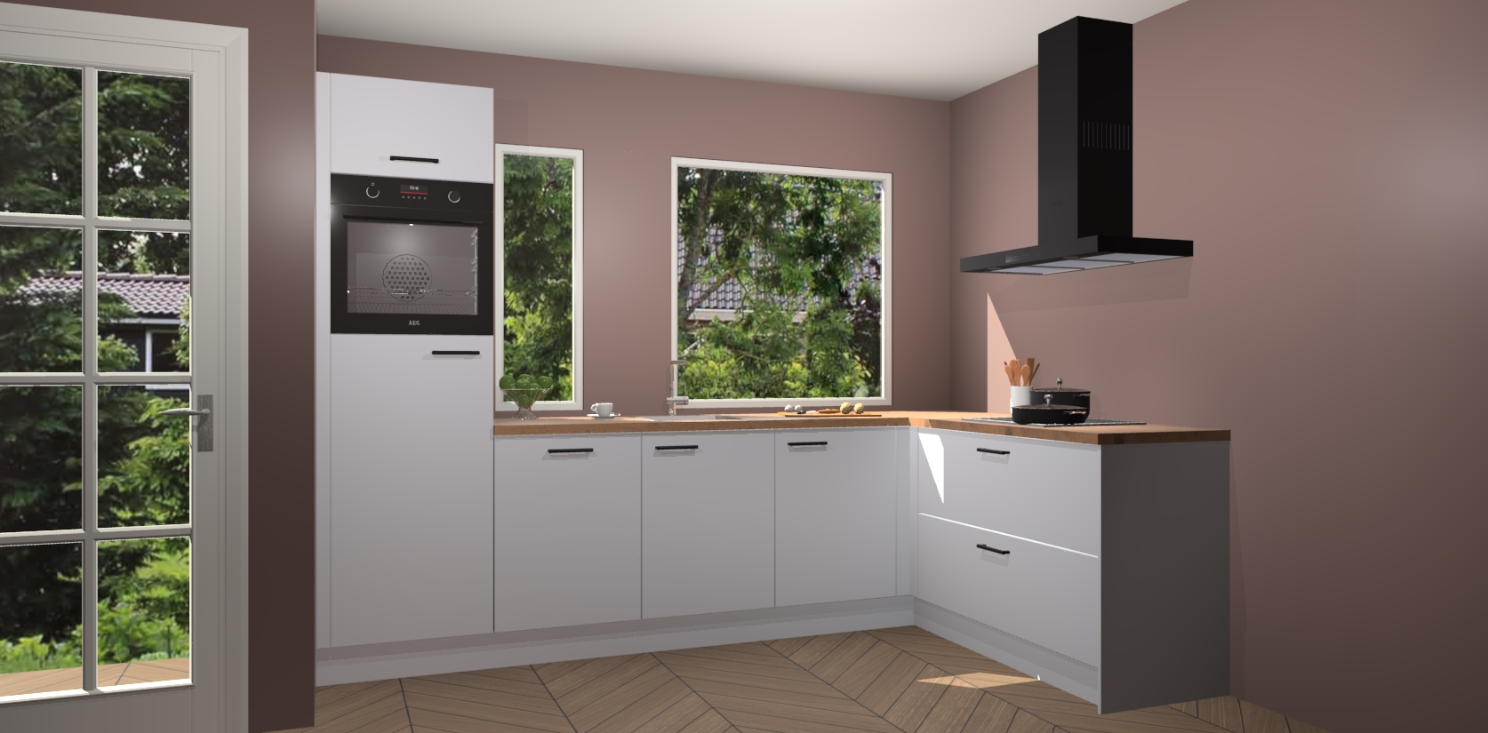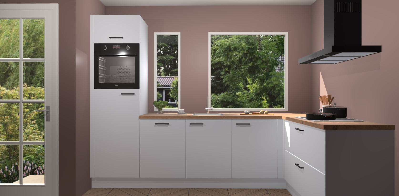 Deze complete keuken wordt geleverd met 5 inbouwapparaten: een oven, inductiekookplaat, afzuigkap, vaatwasser en koelkast. De toestellen kunnen na bestelling ook gemakkelijk worden opgewaardeerd naar AEG. Bovendien is elke deur in deze keuken voorzien van handige softclose technologie voor eenvoudig gebruik! Als een leuke toevoeging zit in deze keuken ook een carrousel, zo hoef je niet meer de hoek in duiken om iets te pakken.