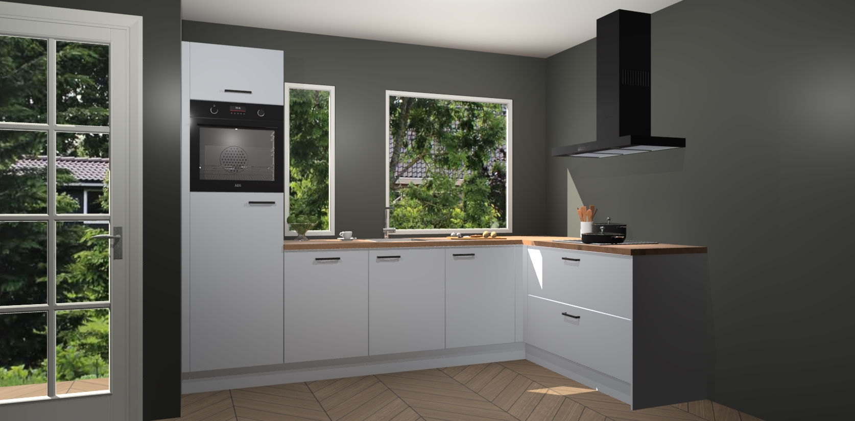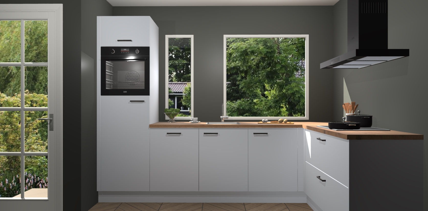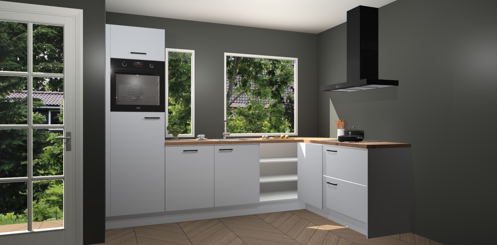 Deze complete keuken wordt geleverd met 5 inbouwapparaten: een oven, inductiekookplaat, afzuigkap, vaatwasser en koelkast. De toestellen kunnen na bestelling ook gemakkelijk worden opgewaardeerd naar AEG. Bovendien is elke deur in deze keuken voorzien van handige softclose technologie voor eenvoudig gebruik! Als een leuke toevoeging zit in deze keuken ook een carrousel, zo hoef je niet meer de hoek in duiken om iets te pakken.