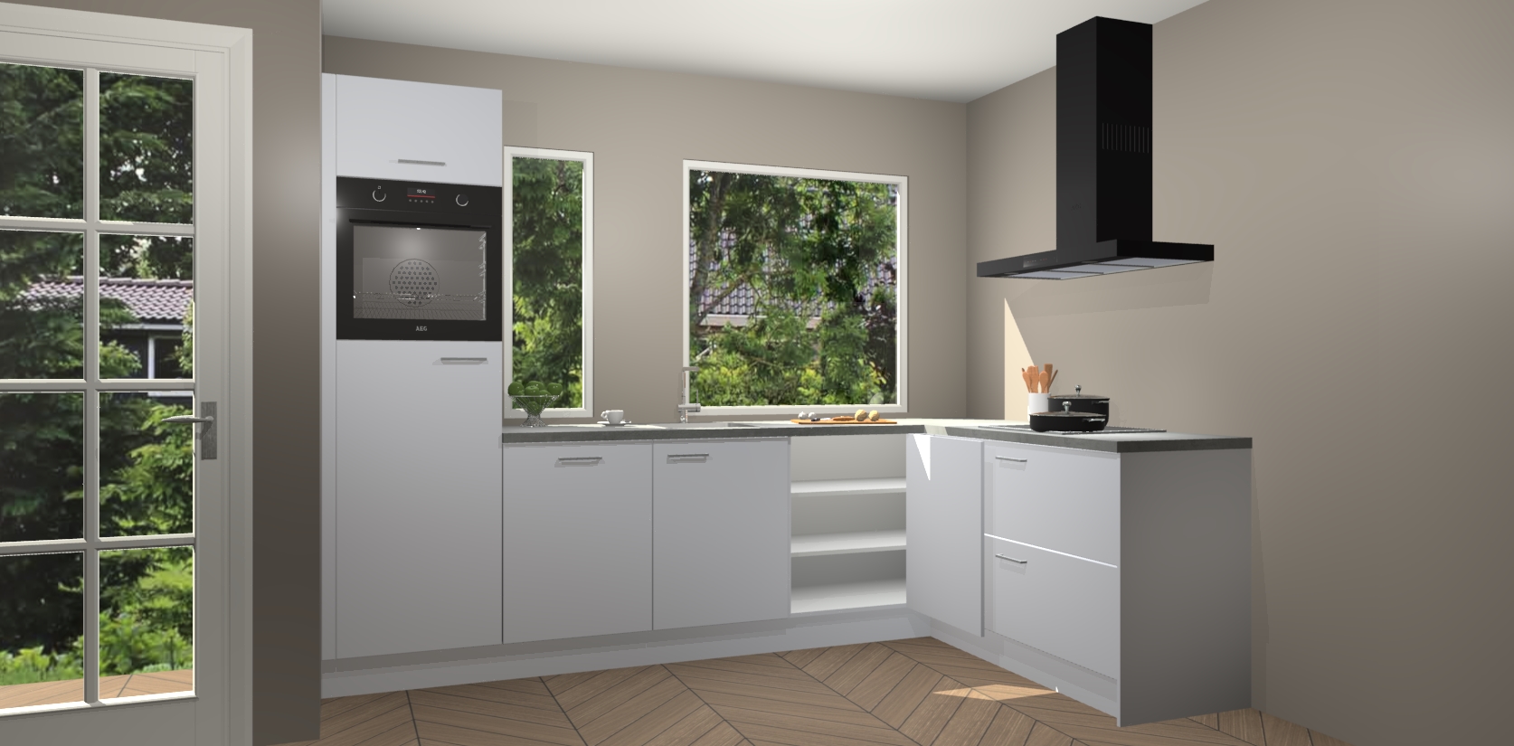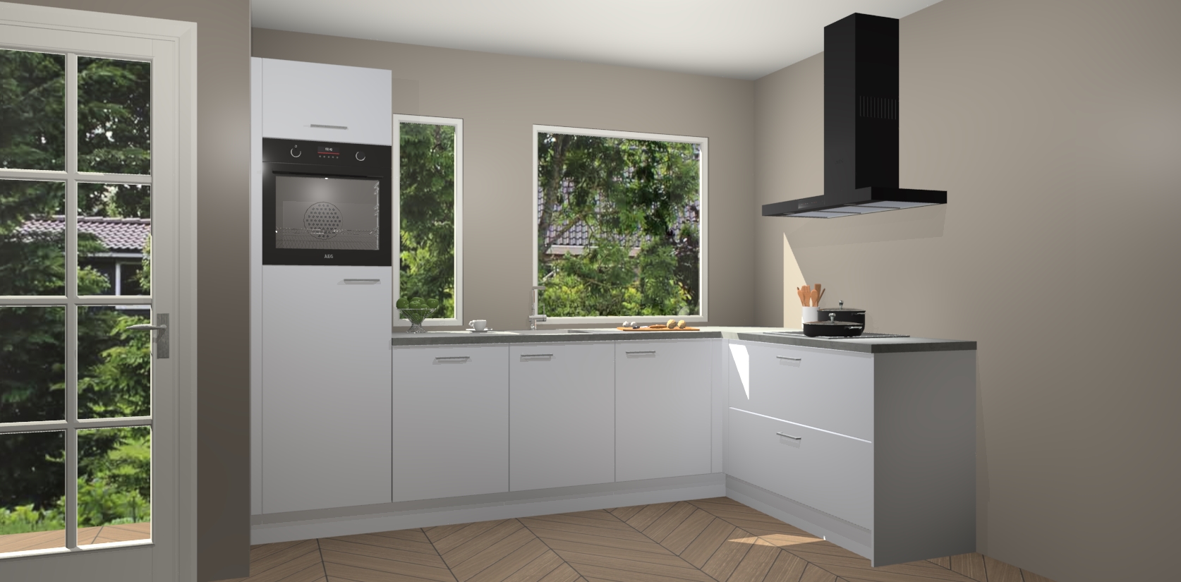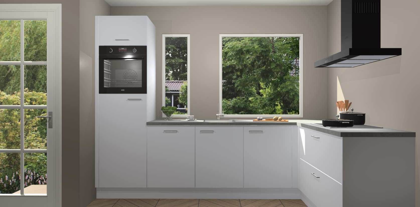 Deze complete keuken wordt geleverd met 5 inbouwapparaten: een oven, inductiekookplaat, afzuigkap, vaatwasser en koelkast. De toestellen kunnen na bestelling ook gemakkelijk worden opgewaardeerd naar AEG. Bovendien is elke deur in deze keuken voorzien van handige softclose technologie voor eenvoudig gebruik! Als een leuke toevoeging zit in deze keuken ook een carrousel, zo hoef je niet meer de hoek in duiken om iets te pakken.