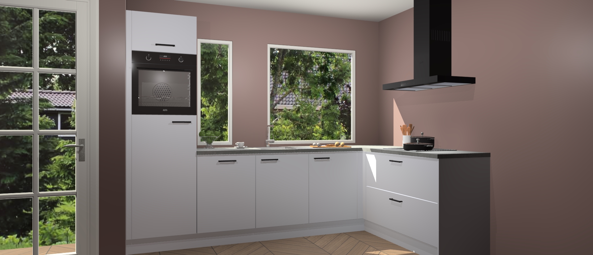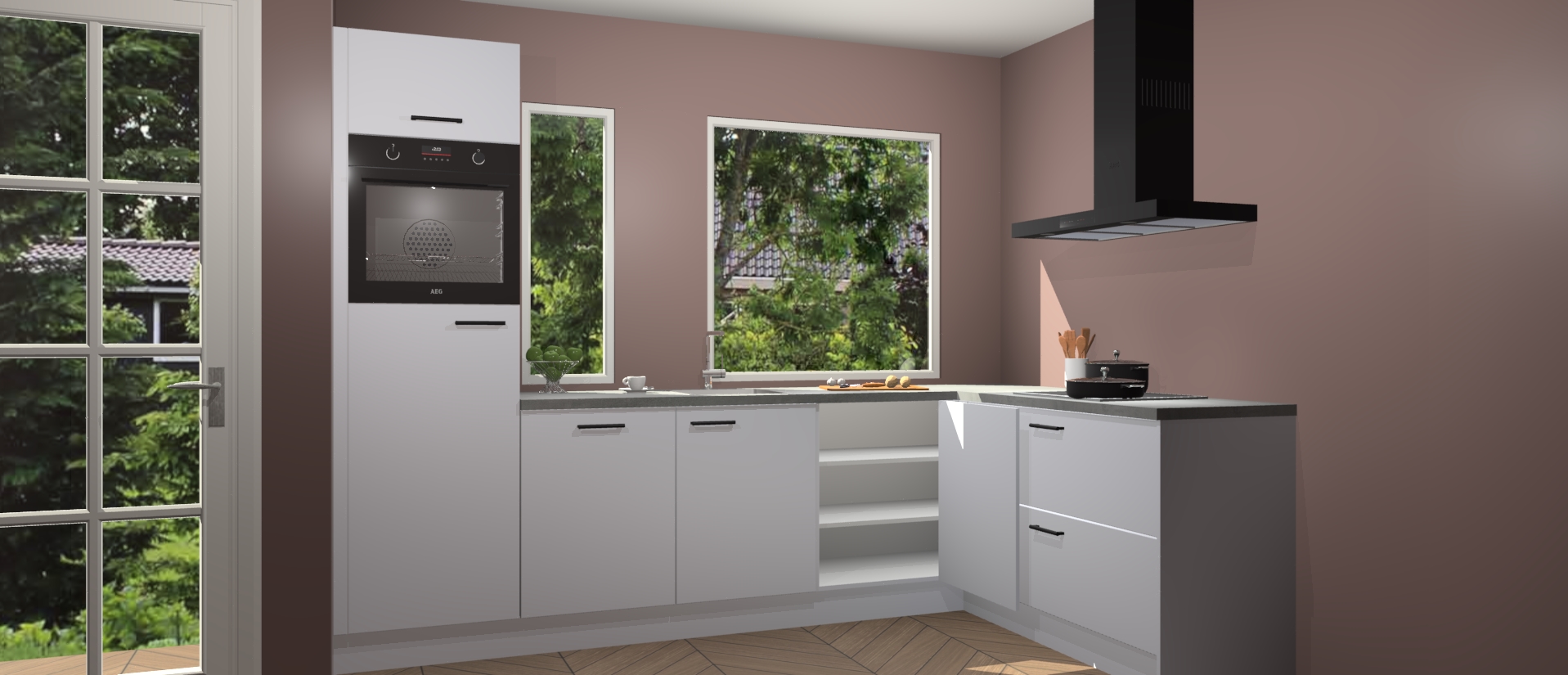 Deze complete keuken wordt geleverd met 5 inbouwapparaten: een oven, inductiekookplaat, afzuigkap, vaatwasser en koelkast. De toestellen kunnen na bestelling ook gemakkelijk worden opgewaardeerd naar AEG. Bovendien is elke deur in deze keuken voorzien van handige softclose technologie voor eenvoudig gebruik! Als een leuke toevoeging zit in deze keuken ook een carrousel, zo hoef je niet meer de hoek in duiken om iets te pakken.