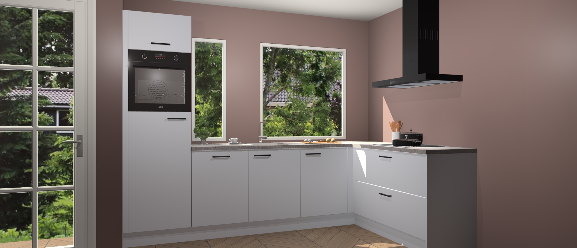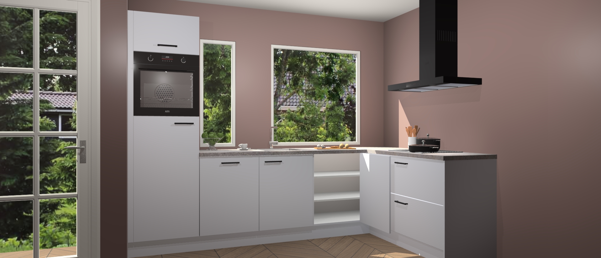 Deze complete keuken wordt geleverd met 5 inbouwapparaten: een oven, inductiekookplaat, afzuigkap, vaatwasser en koelkast. De toestellen kunnen na bestelling ook gemakkelijk worden opgewaardeerd naar AEG. Bovendien is elke deur in deze keuken voorzien van handige softclose technologie voor eenvoudig gebruik! Als een leuke toevoeging zit in deze keuken ook een carrousel, zo hoef je niet meer de hoek in duiken om iets te pakken.