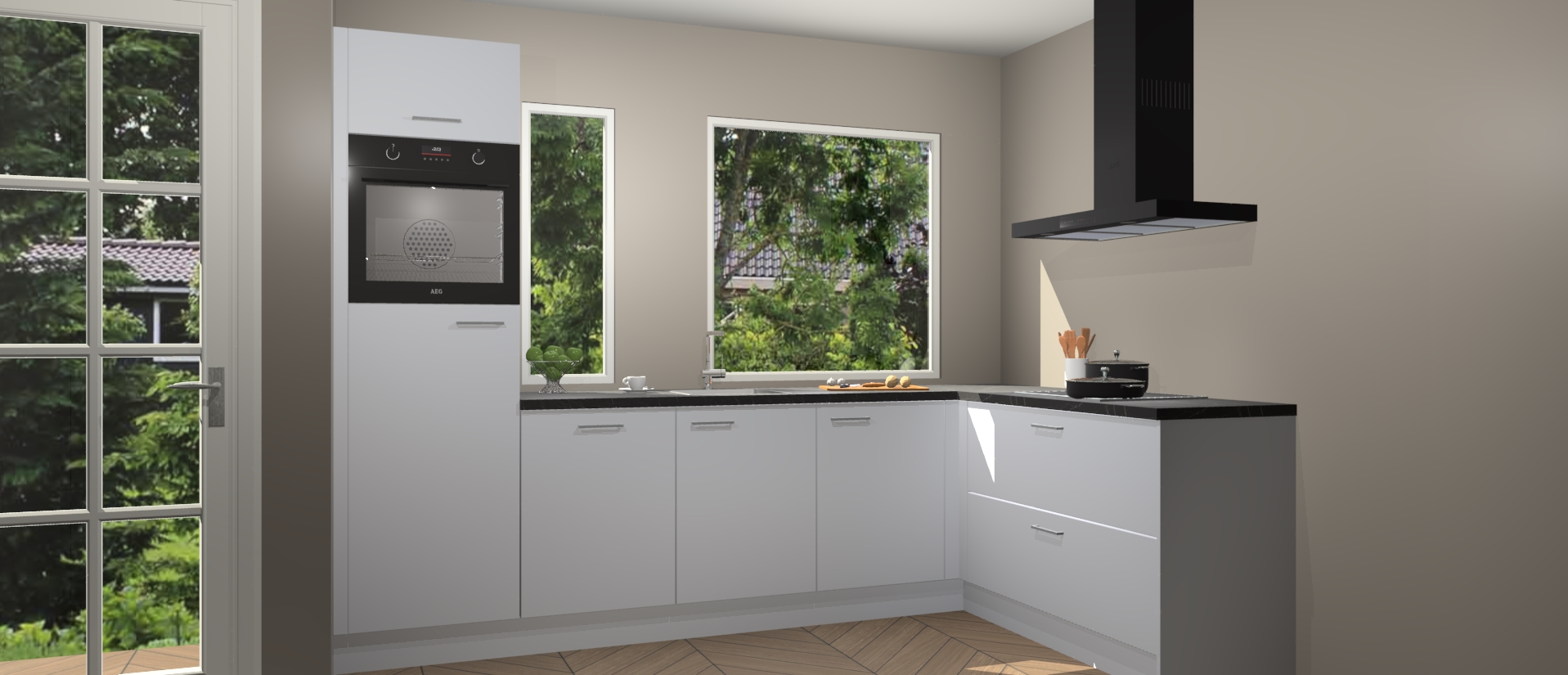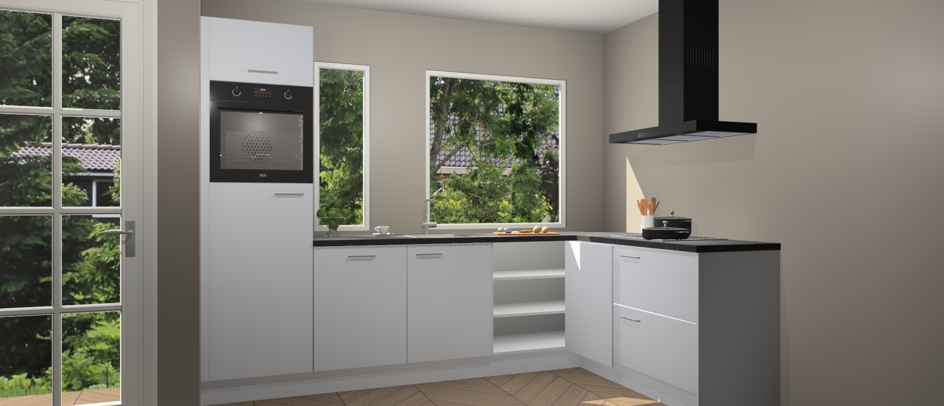 Deze complete keuken wordt geleverd met 5 inbouwapparaten: een oven, inductiekookplaat, afzuigkap, vaatwasser en koelkast. De toestellen kunnen na bestelling ook gemakkelijk worden opgewaardeerd naar AEG. Bovendien is elke deur in deze keuken voorzien van handige softclose technologie voor eenvoudig gebruik! Als een leuke toevoeging zit in deze keuken ook een carrousel, zo hoef je niet meer de hoek in duiken om iets te pakken.