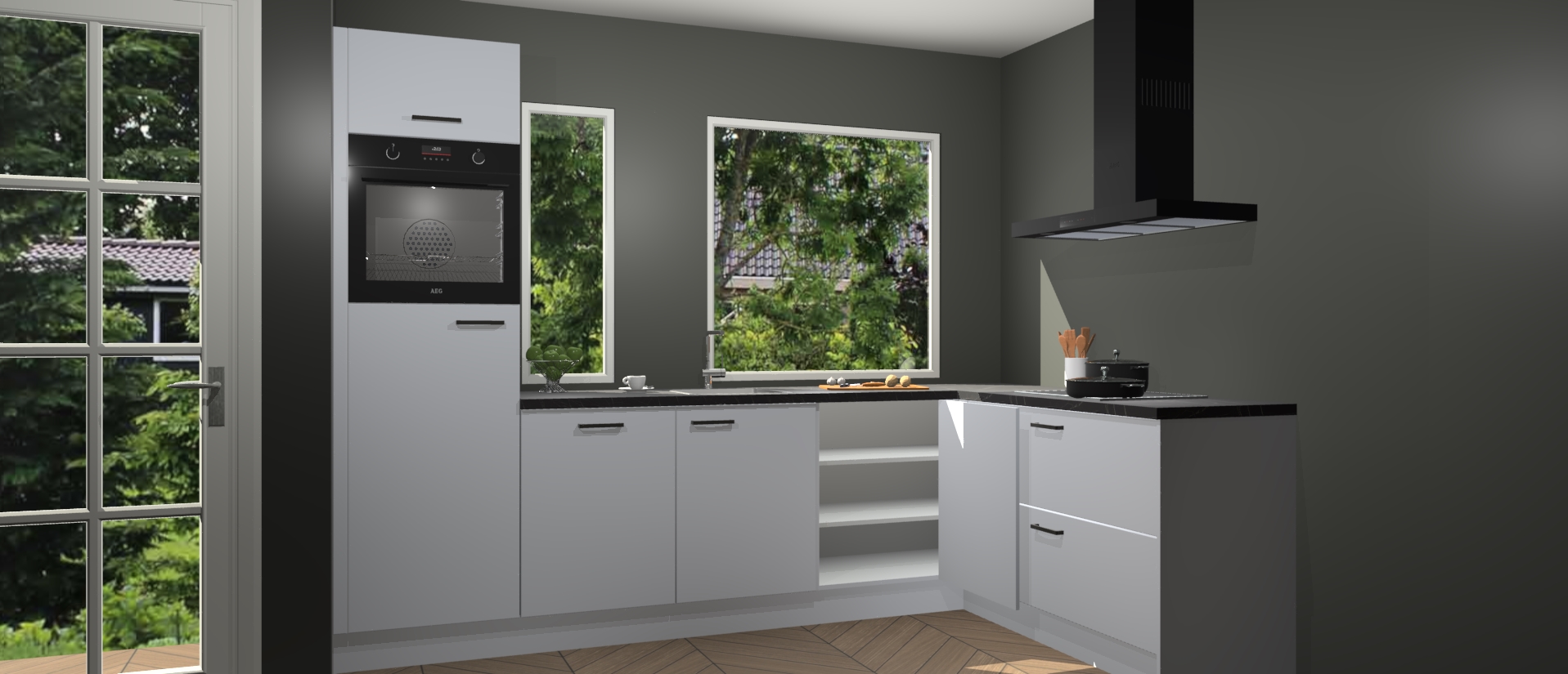 Deze complete keuken wordt geleverd met 5 inbouwapparaten: een oven, inductiekookplaat, afzuigkap, vaatwasser en koelkast. De toestellen kunnen na bestelling ook gemakkelijk worden opgewaardeerd naar AEG. Bovendien is elke deur in deze keuken voorzien van handige softclose technologie voor eenvoudig gebruik! Als een leuke toevoeging zit in deze keuken ook een carrousel, zo hoef je niet meer de hoek in duiken om iets te pakken.