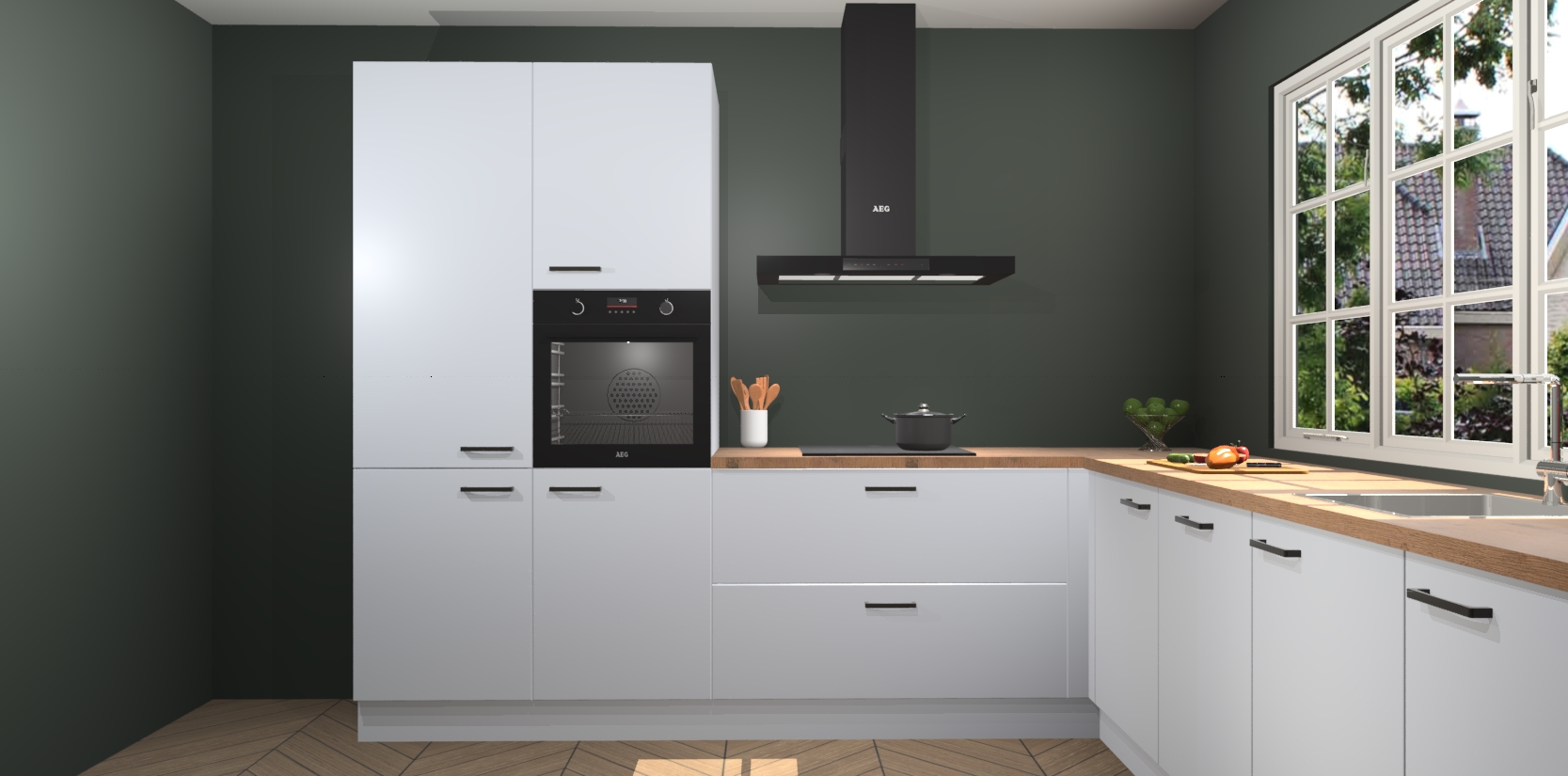 De keuken heeft veel opbergruimte, waardoor u alle ingrediënten gemakkelijk bereikbaar hebt staan. En daarnaast bevat deze volledig uitgeruste keuken ook 5 ingebouwde apparaten: een oven, inductiekookplaat, afzuigkap, vaatwasser en koelkast. Deze zijn heel eenvoudig na bestellen te upgraden naar AEG als u dit wilt. Bovendien zijn de softclose-kastdeuren ideaal; geef ze gewoon even een tikje en ze sluiten automatisch met geruisloze precisie.