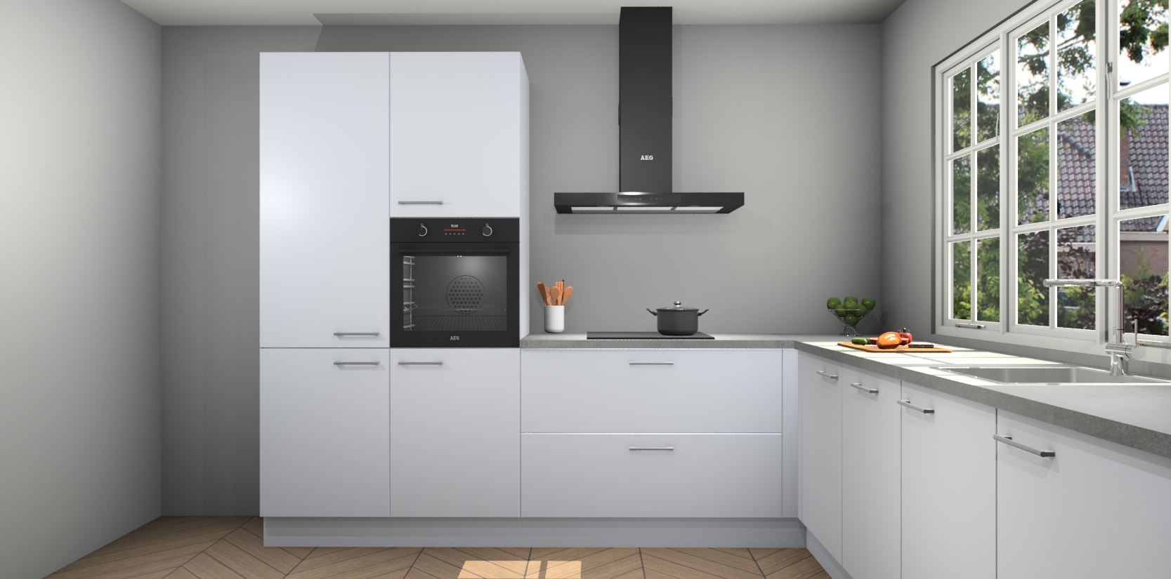 De keuken heeft veel opbergruimte, waardoor u alle ingrediënten gemakkelijk bereikbaar hebt staan. En daarnaast bevat deze volledig uitgeruste keuken ook 5 ingebouwde apparaten: een oven, inductiekookplaat, afzuigkap, vaatwasser en koelkast. Deze zijn heel eenvoudig na bestellen te upgraden naar AEG als u dit wilt. Bovendien zijn de softclose-kastdeuren ideaal; geef ze gewoon even een tikje en ze sluiten automatisch met geruisloze precisie.