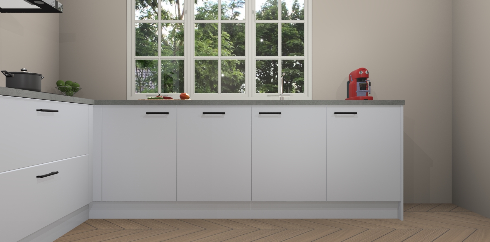 Inclusief plinten, stelpoten en werkblad