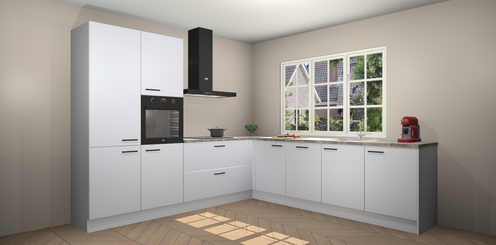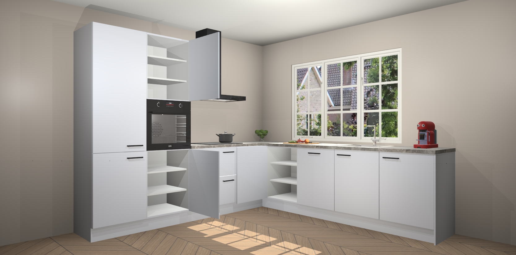 De keuken heeft veel opbergruimte, waardoor u alle ingrediënten gemakkelijk bereikbaar hebt staan. En daarnaast bevat deze volledig uitgeruste keuken ook 5 ingebouwde apparaten: een oven, inductiekookplaat, afzuigkap, vaatwasser en koelkast. Deze zijn heel eenvoudig na bestellen te upgraden naar AEG als u dit wilt. Bovendien zijn de softclose-kastdeuren ideaal; geef ze gewoon even een tikje en ze sluiten automatisch met geruisloze precisie.