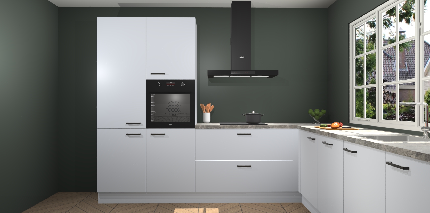 De keuken heeft veel opbergruimte, waardoor u alle ingrediënten gemakkelijk bereikbaar hebt staan. En daarnaast bevat deze volledig uitgeruste keuken ook 5 ingebouwde apparaten: een oven, inductiekookplaat, afzuigkap, vaatwasser en koelkast. Deze zijn heel eenvoudig na bestellen te upgraden naar AEG als u dit wilt. Bovendien zijn de softclose-kastdeuren ideaal; geef ze gewoon even een tikje en ze sluiten automatisch met geruisloze precisie.