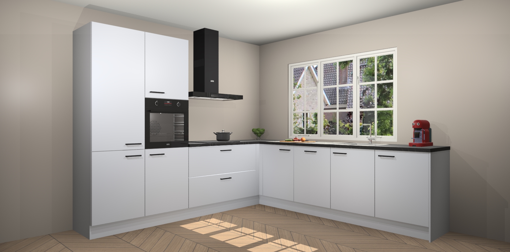 De keuken heeft veel opbergruimte, waardoor u alle ingrediënten gemakkelijk bereikbaar hebt staan. En daarnaast bevat deze volledig uitgeruste keuken ook 5 ingebouwde apparaten: een oven, inductiekookplaat, afzuigkap, vaatwasser en koelkast. Deze zijn heel eenvoudig na bestellen te upgraden naar AEG als u dit wilt. Bovendien zijn de softclose-kastdeuren ideaal; geef ze gewoon even een tikje en ze sluiten automatisch met geruisloze precisie.