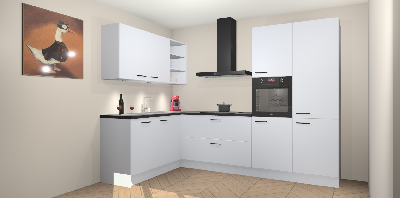 De Sneeuwwitte keuken Cognac is een adembenemend ontwerp met een modern en tijdloos uiterlijk. Deze luxe keuken straalt echt aristocratisch uit, waardoor uw koken plezieriger zal worden! Het prachtige design begint bij de hoekkeuken, wat perfect past bij elk type interieur. Bovendien bevat deze hoogwaardige set vijf inbouwapparaten - van oven tot koelkast - die via bestelling naar AEG geüpgraded kunnen worden!