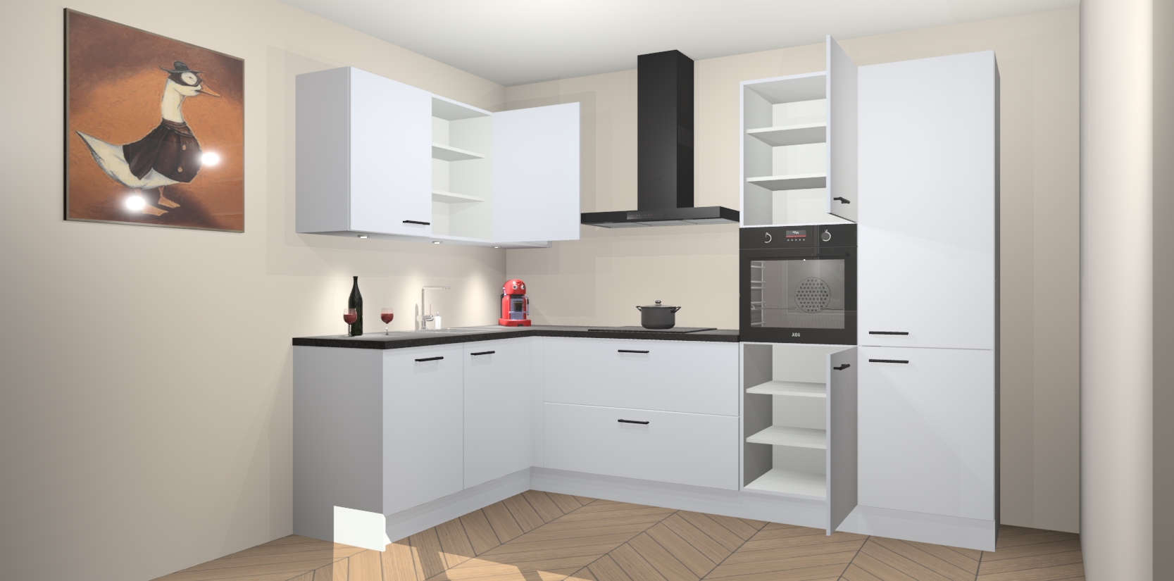 De Sneeuwwitte keuken Cognac gaat alleen maar om de beste keukenervaring. Kies gewoon de beste apparatuur en ongeëvenaarde Duitse constructie die u thuis wilt hebben en verander uw huiskamer hartelijkheid meteen in professionaliteit. Laat de toon weten dat u gemakkelijk kan genieten van alle luxe die u verdiend? Bestel nu de Sneeuwwitte keuken Cognac voor bij u thuis!