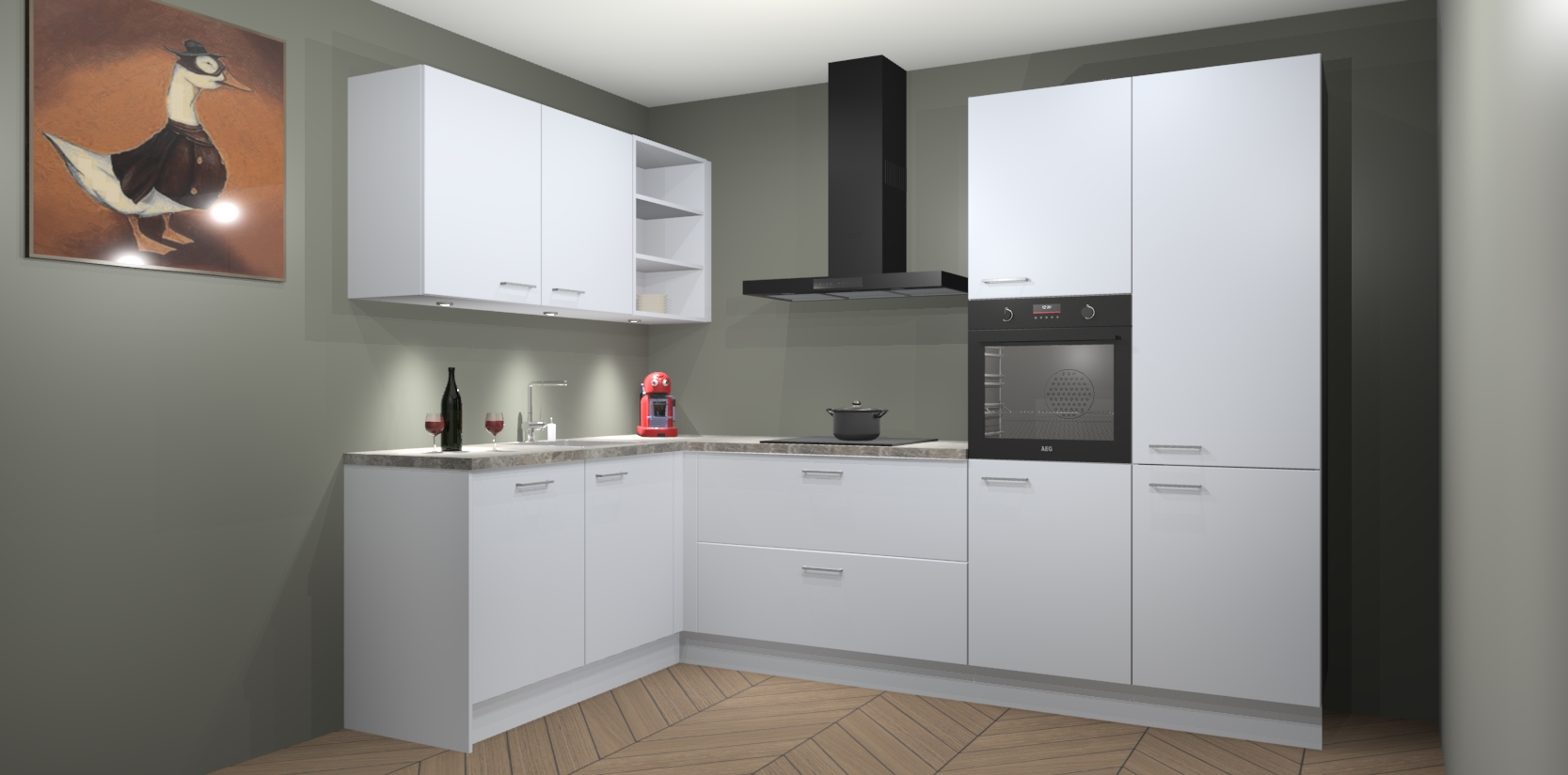De Sneeuwwitte keuken Cognac is een adembenemend ontwerp met een modern en tijdloos uiterlijk. Deze luxe keuken straalt echt aristocratisch uit, waardoor uw koken plezieriger zal worden! Het prachtige design begint bij de hoekkeuken, wat perfect past bij elk type interieur. Bovendien bevat deze hoogwaardige set vijf inbouwapparaten - van oven tot koelkast - die via bestelling naar AEG geüpgraded kunnen worden!