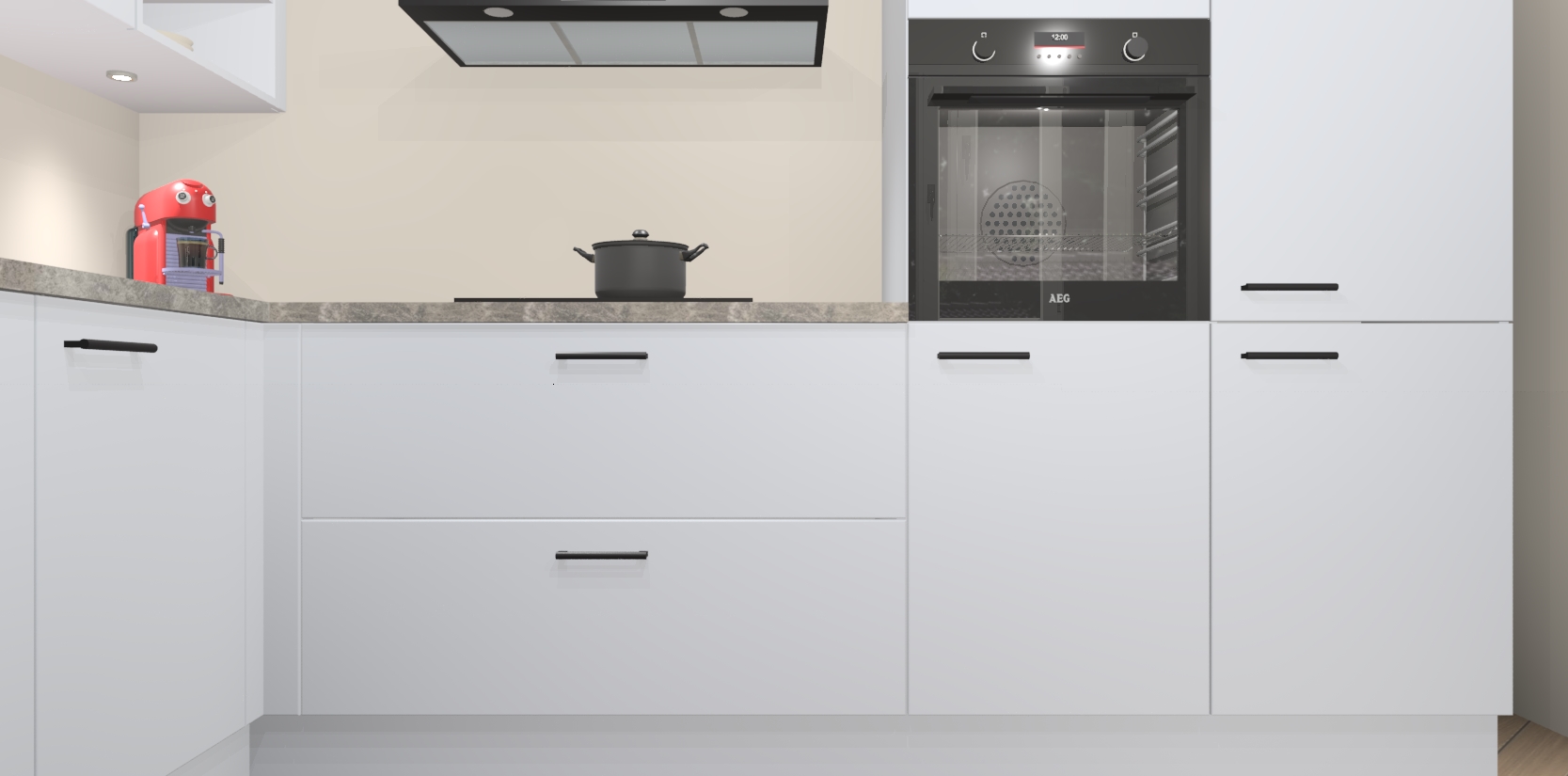 Inclusief plinten, stelpoten en werkblad