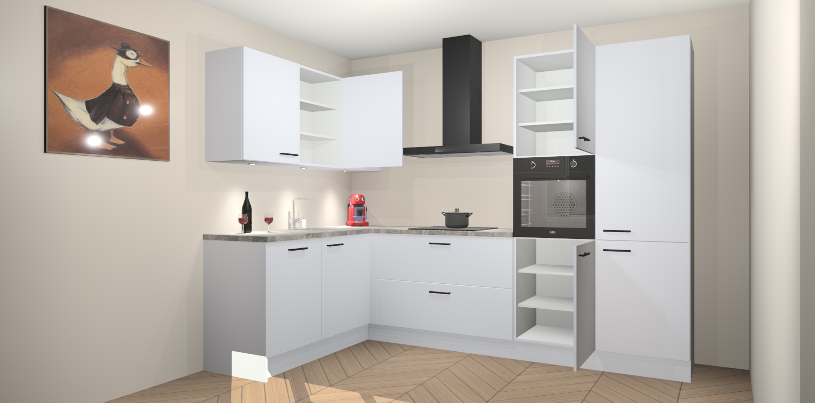 De Sneeuwwitte keuken Cognac gaat alleen maar om de beste keukenervaring. Kies gewoon de beste apparatuur en ongeëvenaarde Duitse constructie die u thuis wilt hebben en verander uw huiskamer hartelijkheid meteen in professionaliteit. Laat de toon weten dat u gemakkelijk kan genieten van alle luxe die u verdiend? Bestel nu de Sneeuwwitte keuken Cognac voor bij u thuis!