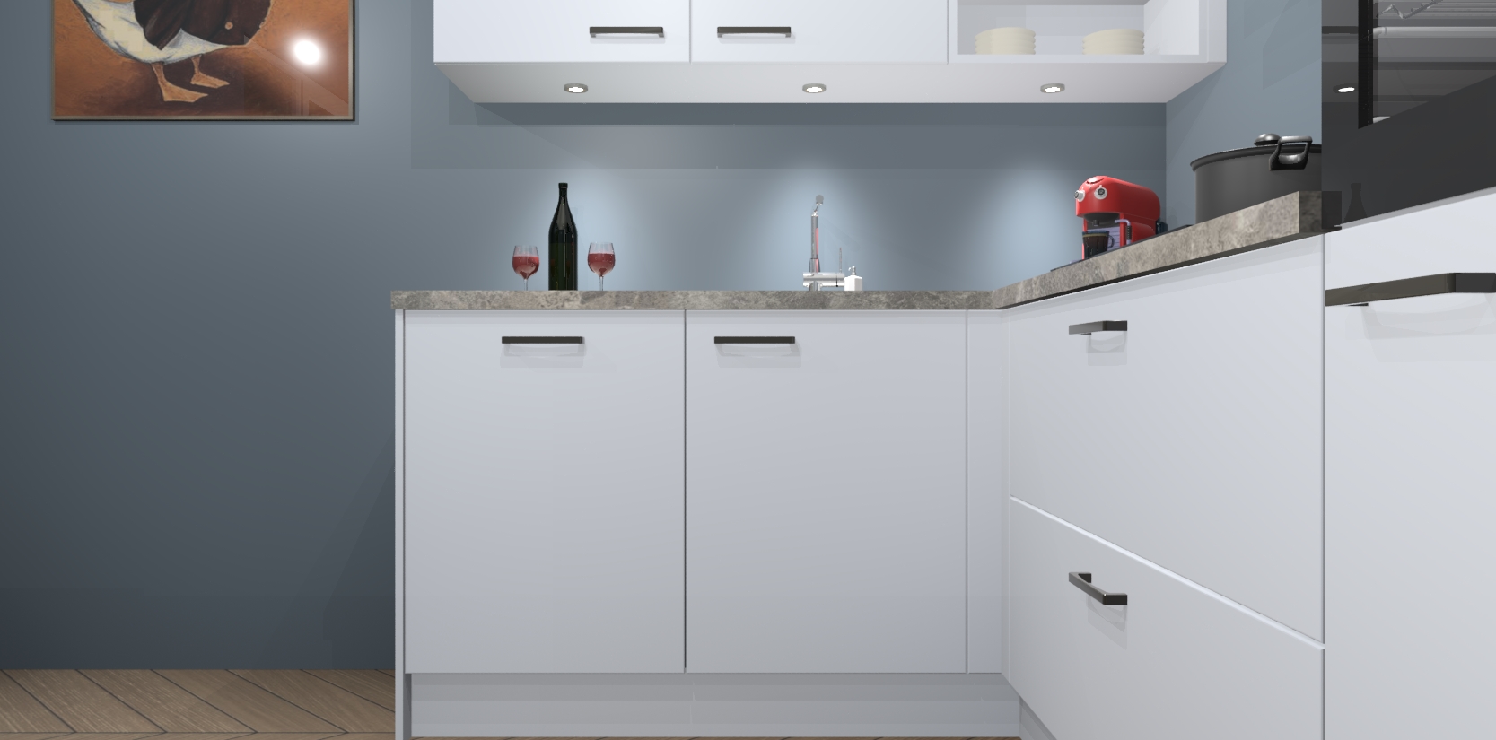 In deze box zijn alle kleuren verzameld van de deuren en werkbladen. Vraag de gratis kleurenbox aan en kijk thuis rustig verder!