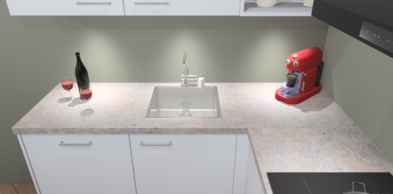 - Bij een hoekwerkblad zijn de hoeken in gevreesd en op maat gemaakt