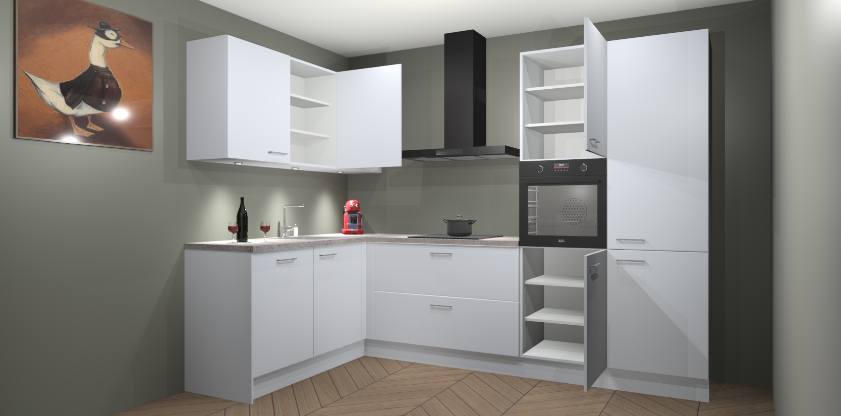 De Sneeuwwitte keuken Cognac is een adembenemend ontwerp met een modern en tijdloos uiterlijk. Deze luxe keuken straalt echt aristocratisch uit, waardoor uw koken plezieriger zal worden! Het prachtige design begint bij de hoekkeuken, wat perfect past bij elk type interieur. Bovendien bevat deze hoogwaardige set vijf inbouwapparaten - van oven tot koelkast - die via bestelling naar AEG geüpgraded kunnen worden!