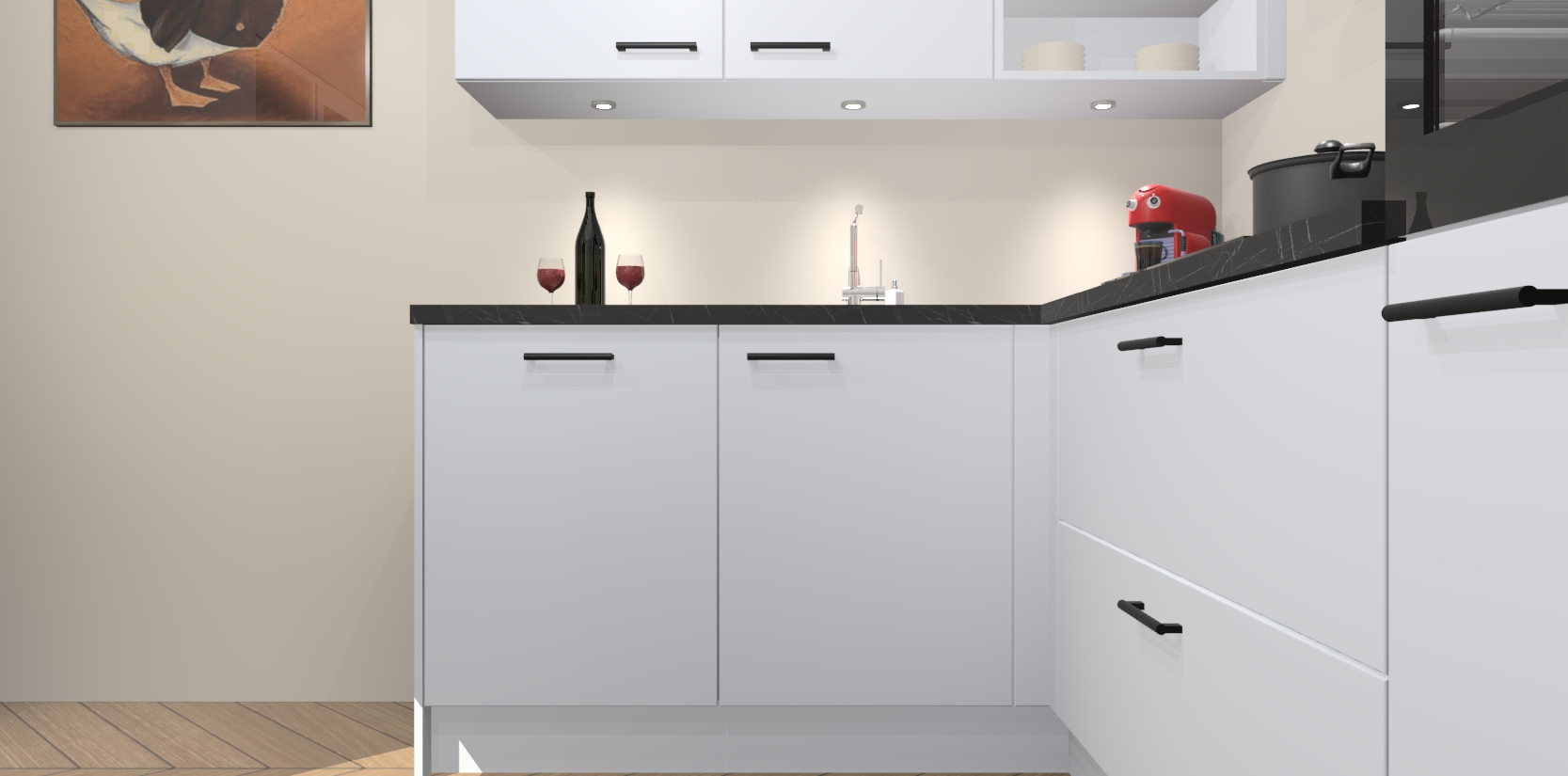 In deze box zijn alle kleuren verzameld van de deuren en werkbladen. Vraag de gratis kleurenbox aan en kijk thuis rustig verder!