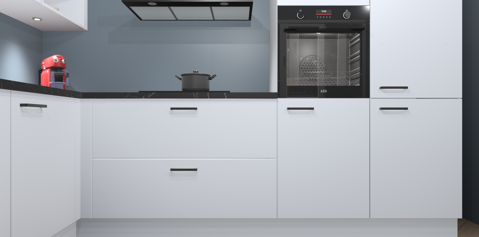 In deze box zijn alle kleuren verzameld van de deuren en werkbladen. Vraag de gratis kleurenbox aan en kijk thuis rustig verder!