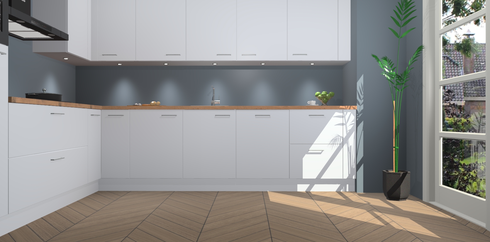 Inclusief plinten, stelpoten en werkblad
