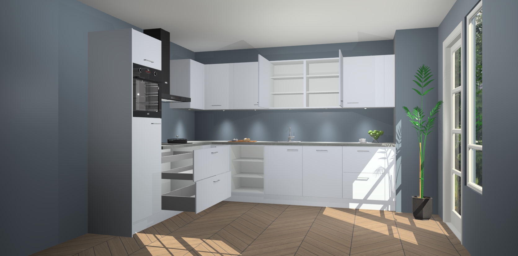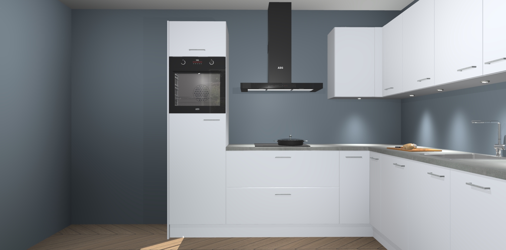 De Sneeuwwitte keuken Debar is uitgerust met vijf inbouwapparaten die elke kooktaak handig en efficiënt maken. Een oven, inductiekookplaat, afzuigkap, vaatwasser en koelkast zijn standaard, maar kunnen na bestelling eenvoudig worden geupgrade naar AEG. Profiteer vervolgens van de softclose deuren voor snelle toegang en geruisloze toegang.