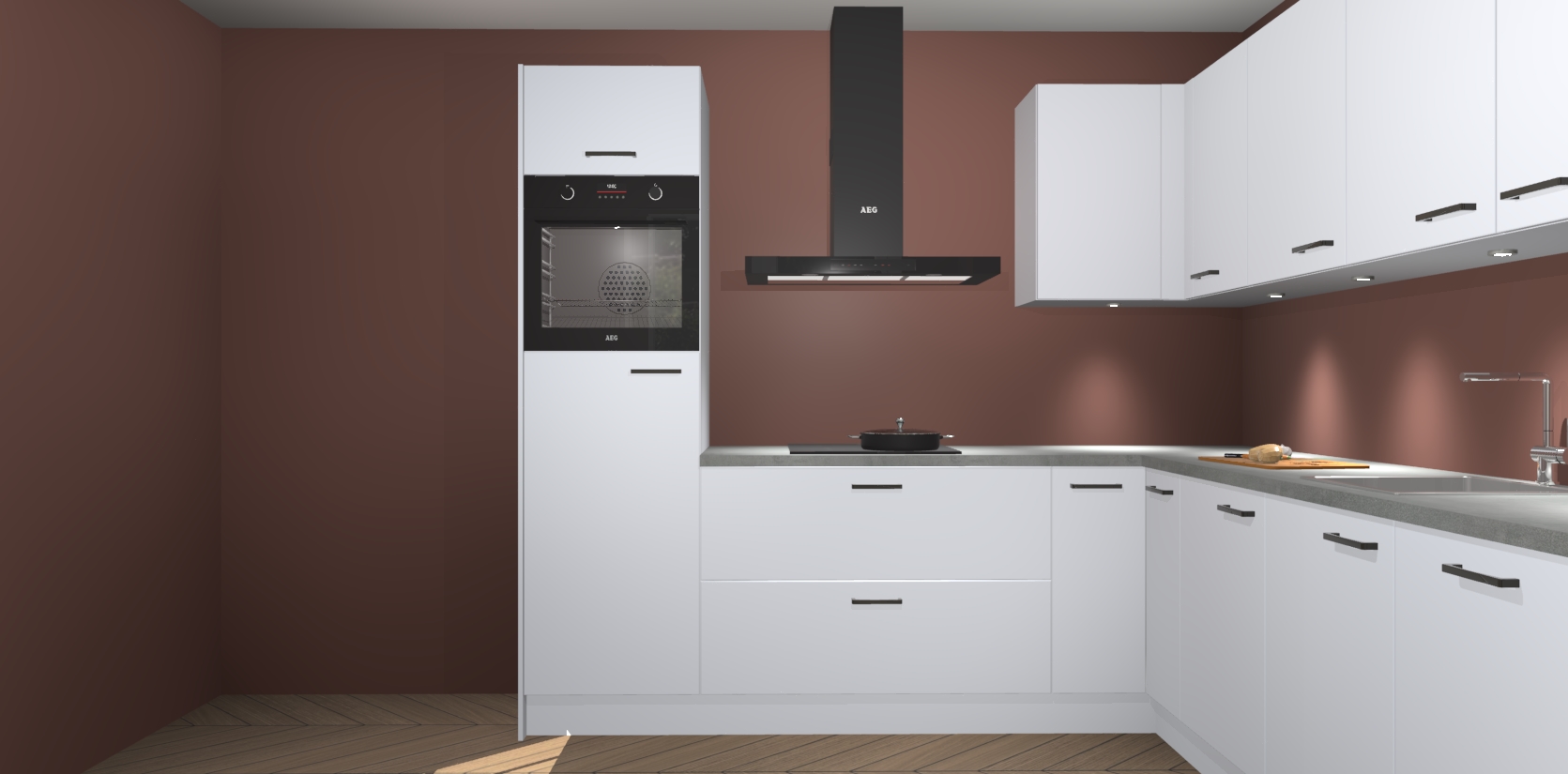 De Sneeuwwitte keuken Debar is uitgerust met vijf inbouwapparaten die elke kooktaak handig en efficiënt maken. Een oven, inductiekookplaat, afzuigkap, vaatwasser en koelkast zijn standaard, maar kunnen na bestelling eenvoudig worden geupgrade naar AEG. Profiteer vervolgens van de softclose deuren voor snelle toegang en geruisloze toegang.