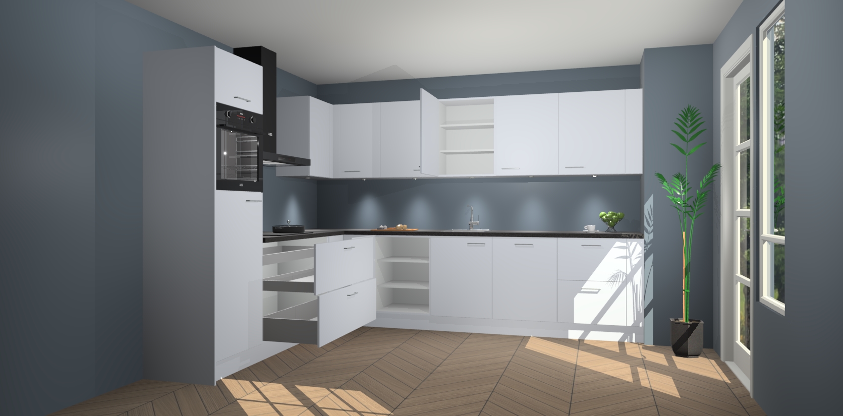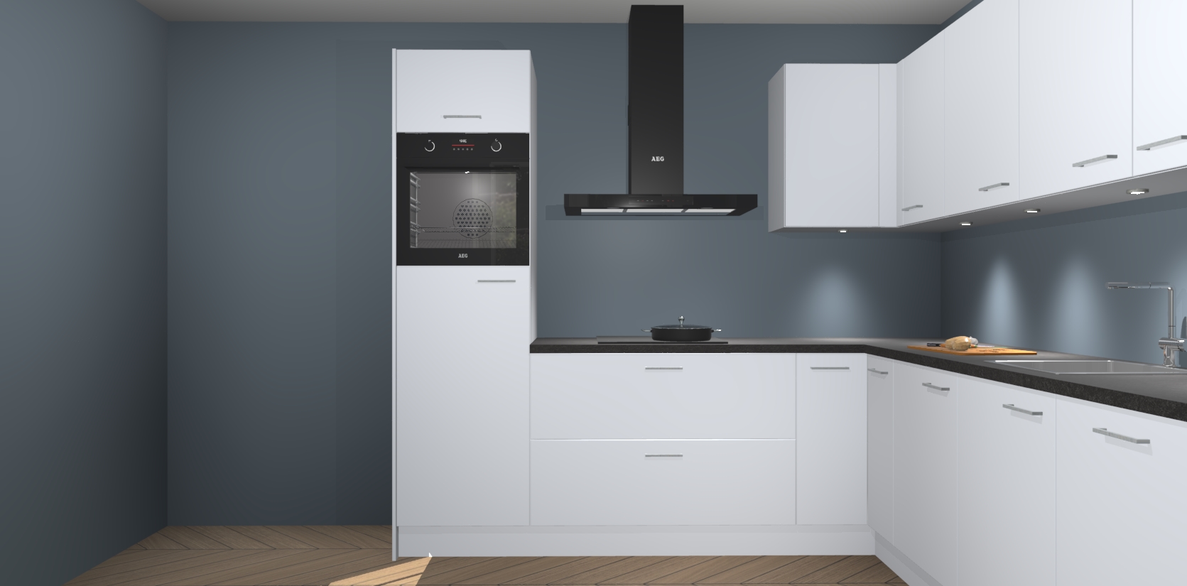 De Sneeuwwitte keuken Debar is uitgerust met vijf inbouwapparaten die elke kooktaak handig en efficiënt maken. Een oven, inductiekookplaat, afzuigkap, vaatwasser en koelkast zijn standaard, maar kunnen na bestelling eenvoudig worden geupgrade naar AEG. Profiteer vervolgens van de softclose deuren voor snelle toegang en geruisloze toegang.