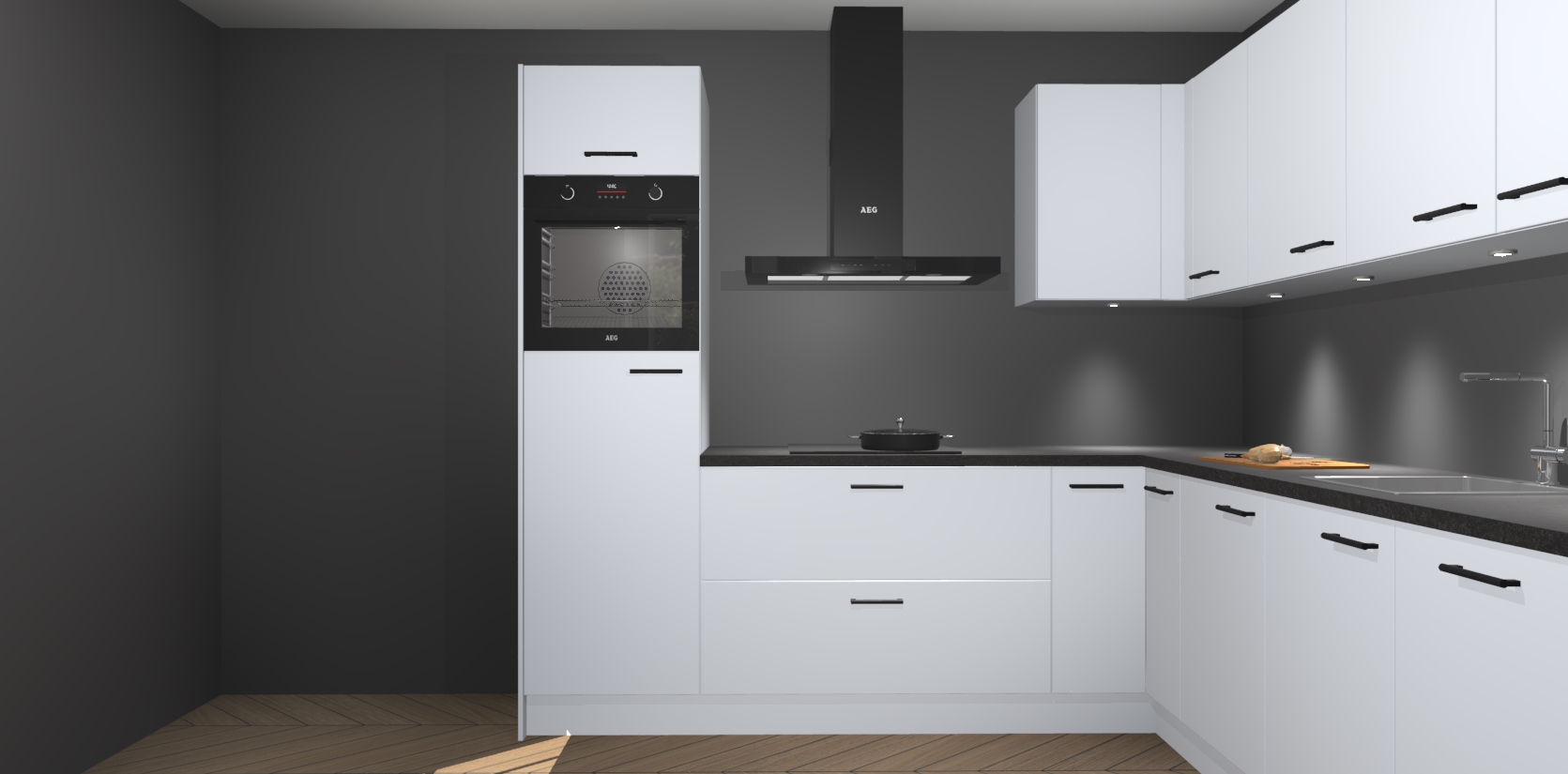 De Sneeuwwitte keuken Debar is uitgerust met vijf inbouwapparaten die elke kooktaak handig en efficiënt maken. Een oven, inductiekookplaat, afzuigkap, vaatwasser en koelkast zijn standaard, maar kunnen na bestelling eenvoudig worden geupgrade naar AEG. Profiteer vervolgens van de softclose deuren voor snelle toegang en geruisloze toegang.