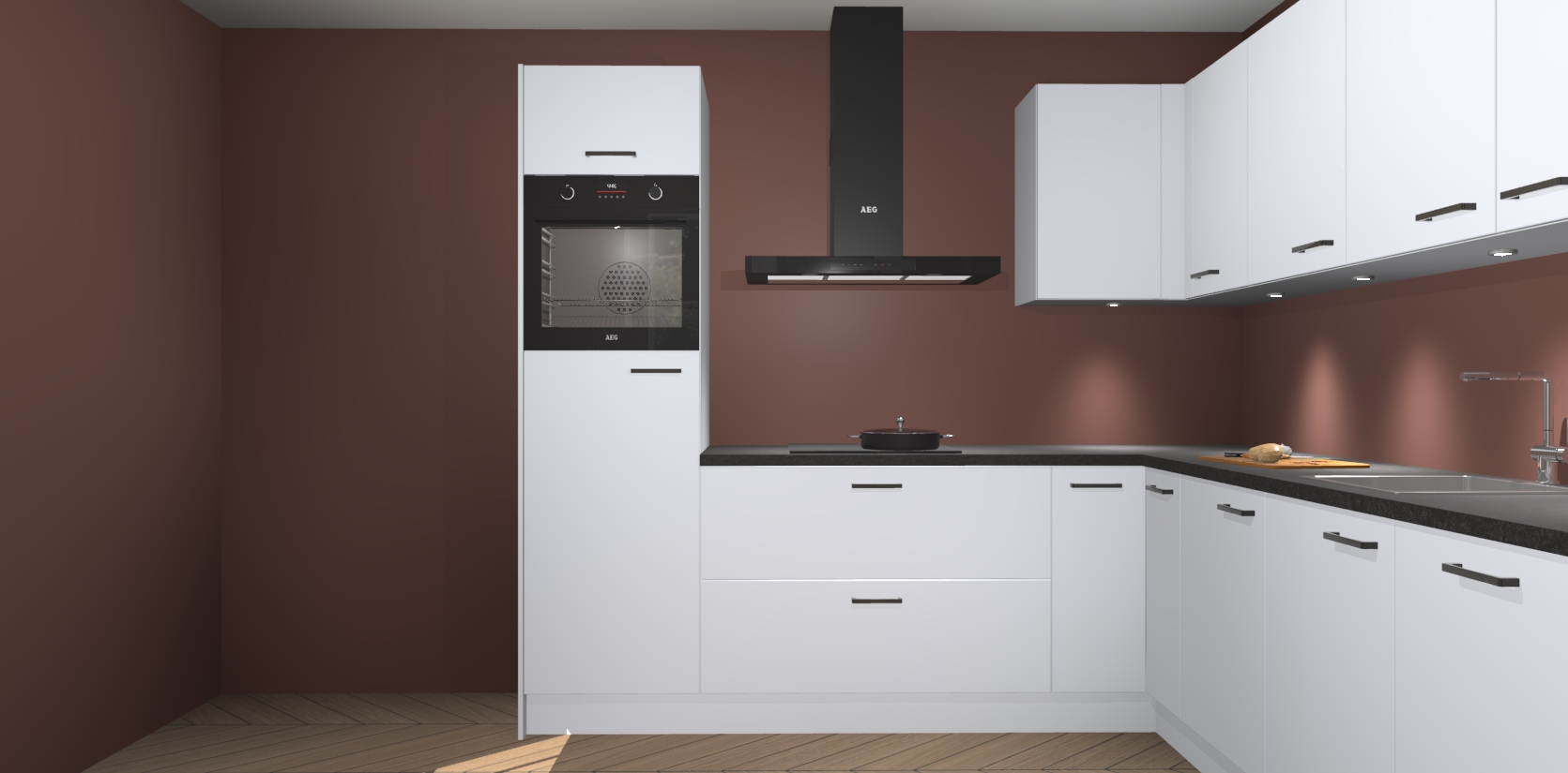 De Sneeuwwitte keuken Debar is uitgerust met vijf inbouwapparaten die elke kooktaak handig en efficiënt maken. Een oven, inductiekookplaat, afzuigkap, vaatwasser en koelkast zijn standaard, maar kunnen na bestelling eenvoudig worden geupgrade naar AEG. Profiteer vervolgens van de softclose deuren voor snelle toegang en geruisloze toegang.