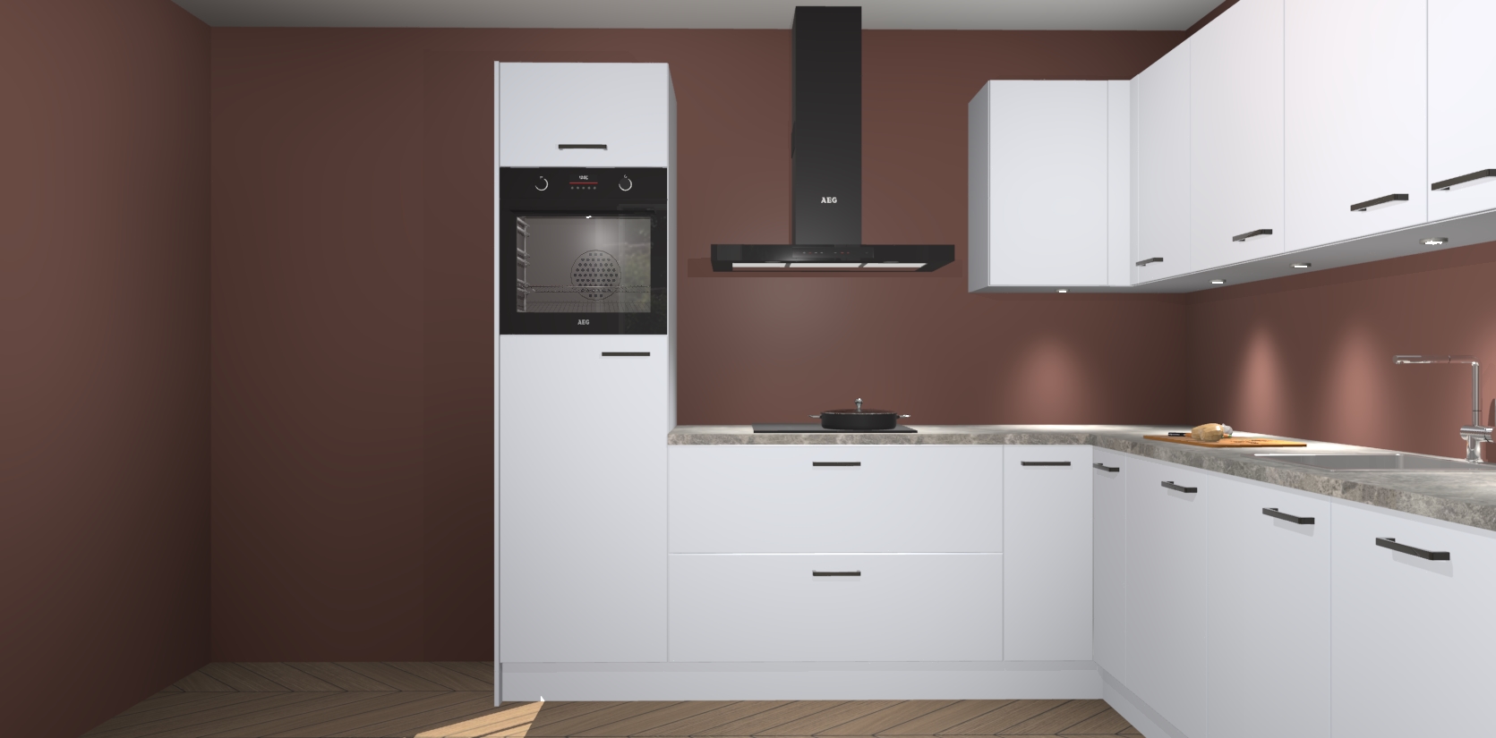 De Sneeuwwitte keuken Debar is uitgerust met vijf inbouwapparaten die elke kooktaak handig en efficiënt maken. Een oven, inductiekookplaat, afzuigkap, vaatwasser en koelkast zijn standaard, maar kunnen na bestelling eenvoudig worden geupgrade naar AEG. Profiteer vervolgens van de softclose deuren voor snelle toegang en geruisloze toegang.