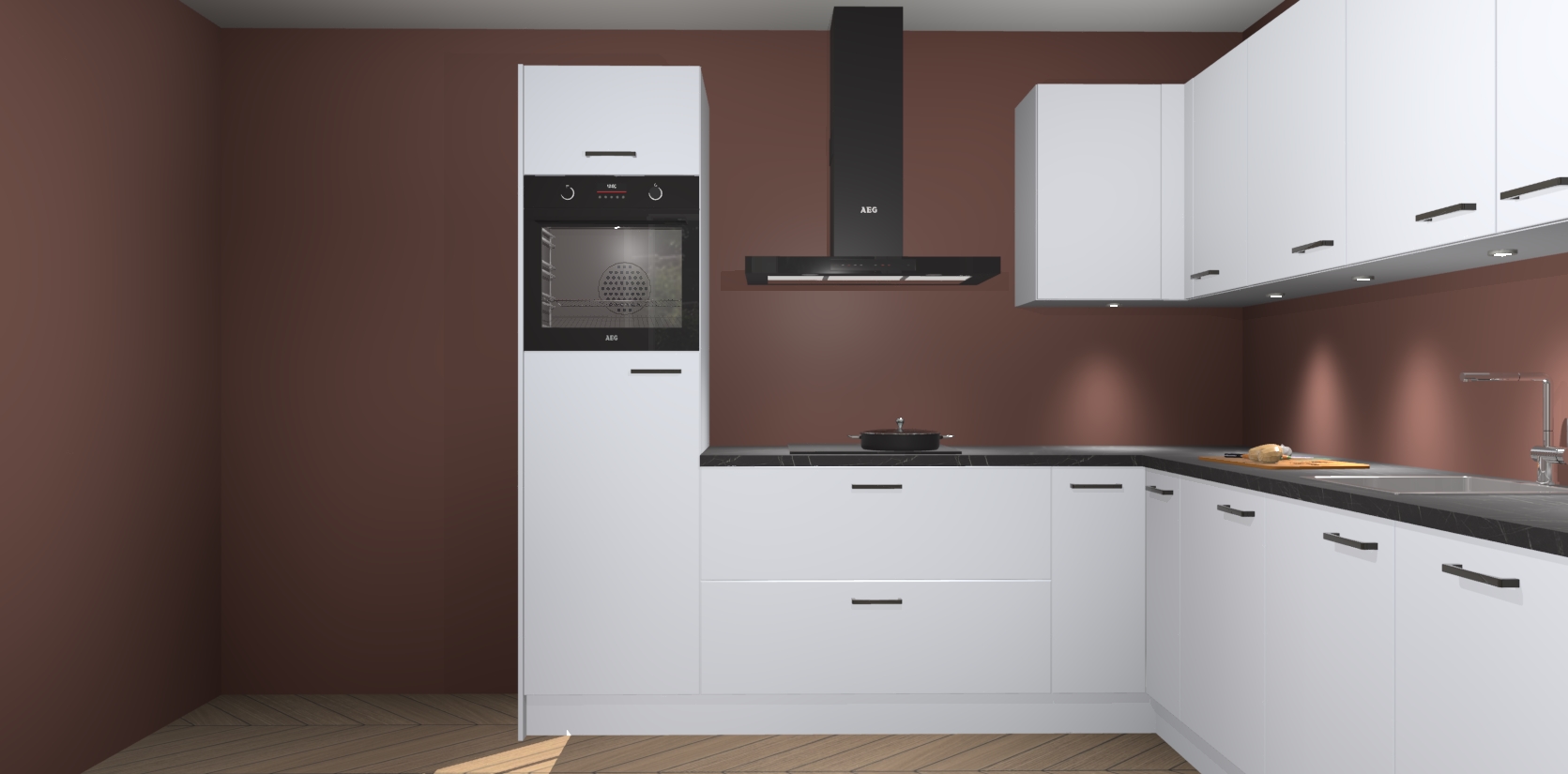 De Sneeuwwitte keuken Debar is uitgerust met vijf inbouwapparaten die elke kooktaak handig en efficiënt maken. Een oven, inductiekookplaat, afzuigkap, vaatwasser en koelkast zijn standaard, maar kunnen na bestelling eenvoudig worden geupgrade naar AEG. Profiteer vervolgens van de softclose deuren voor snelle toegang en geruisloze toegang.