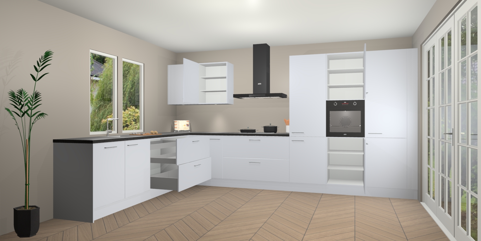 In deze box zijn alle kleuren verzameld van de deuren en werkbladen. Vraag de gratis kleurenbox aan en kijk thuis rustig verder!