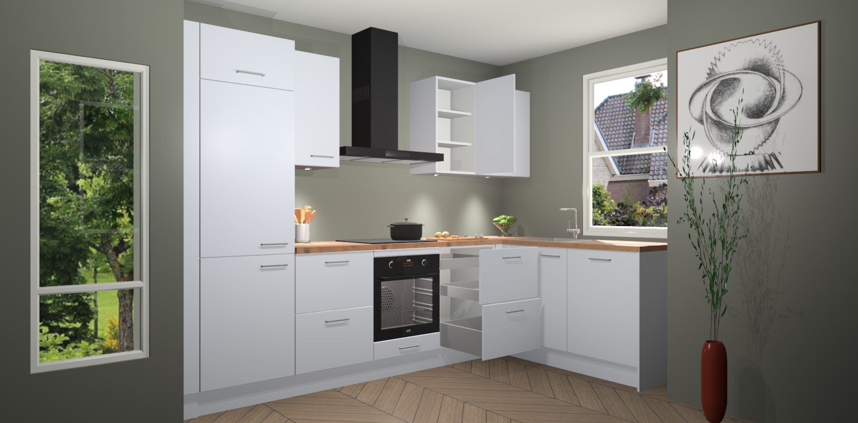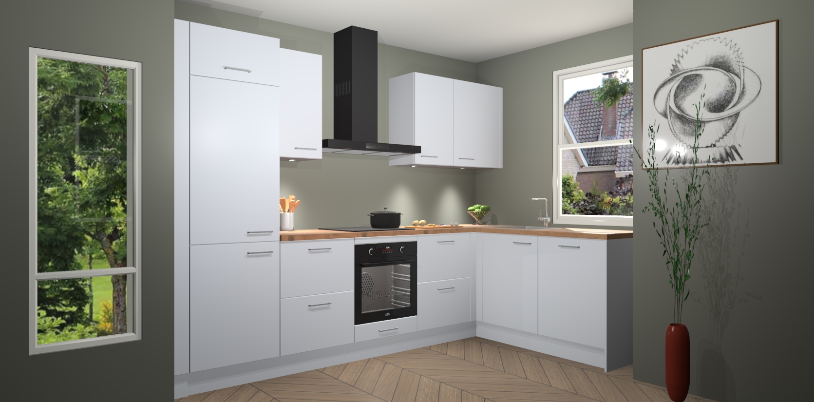 De Sneeuwwitte keuken Geneve is precies wat u nodig heeft als u op zoek bent naar modern design, versmolten met tijdloze schoonheid. De strakke afwerking voegt klasse toe terwijl het toch een uitnodigende sfeer behoudt; zeker om zowel gasten als uzelf te inspireren om in stijl te gaan koken! En nog beter, het zal uw budget niet breken - dus waarom wachten? Met de Sneeuwwitte keuken Geneve bent u verzekerd van kwaliteit zonder in te leveren op de prijs!