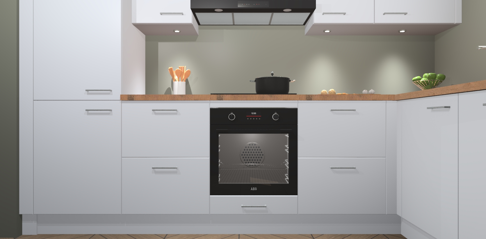 De Sneeuwwitte keuken Geneve is uitgerust met 5 inbouwapparaten - een oven, inductiekookplaat, afzuigkap, vaatwasser en koelkast - voor al uw kook- en bewaarbehoeftes. U kunt deze apparaten desgewenst eenvoudig upgraden naar AEG of de oven omruilen voor een combimagnetron na het plaatsen van uw bestelling. En met de soft close deuren, voldoende opbergruimte en kasten die voorgemonteerd worden geleverd, bent u in een mum van tijd klaar om heerlijke maaltijden te bereiden!