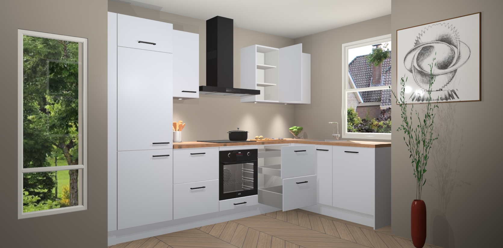 Inclusief plinten, stelpoten en werkblad