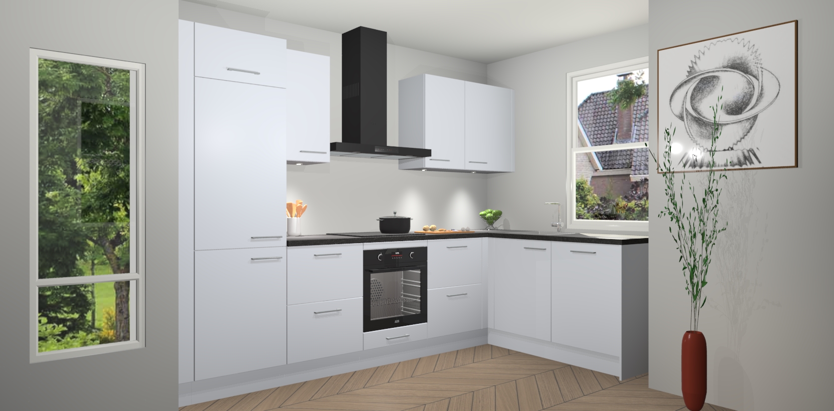 De Sneeuwwitte keuken Geneve is precies wat u nodig heeft als u op zoek bent naar modern design, versmolten met tijdloze schoonheid. De strakke afwerking voegt klasse toe terwijl het toch een uitnodigende sfeer behoudt; zeker om zowel gasten als uzelf te inspireren om in stijl te gaan koken! En nog beter, het zal uw budget niet breken - dus waarom wachten? Met de Sneeuwwitte keuken Geneve bent u verzekerd van kwaliteit zonder in te leveren op de prijs!