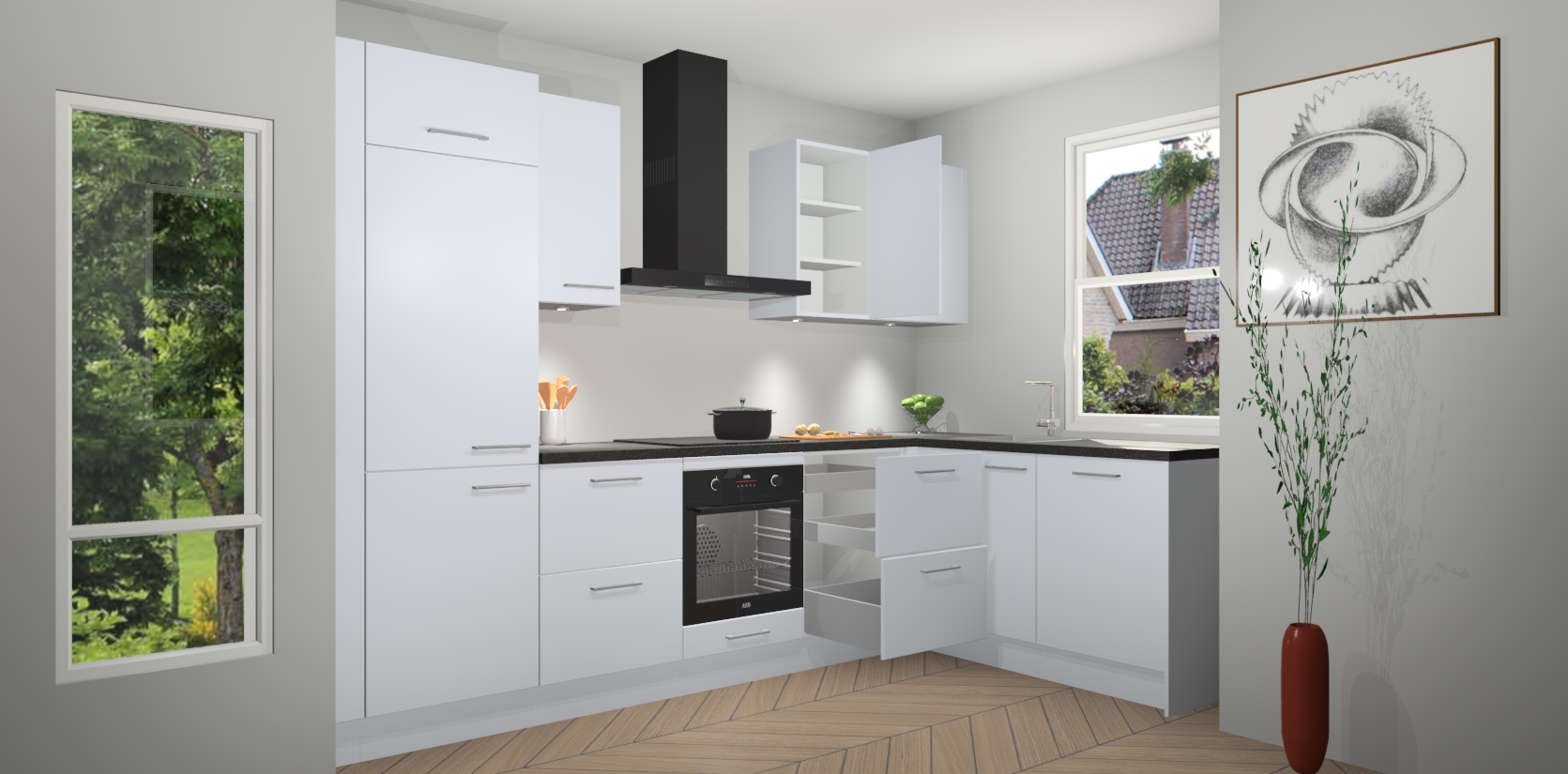 Bent u op zoek naar een moderne en tijdloze keuken die schoonheid in uw huis brengt? Zoek dan niet verder dan de Sneeuwwitte keuken Geneve - de perfecte keuken voor al uw wensen. Deze hoekkeuken biedt de hoogste Duitse kwaliteit voor een vaste lage prijs en is zeker een blikvanger in uw huis!