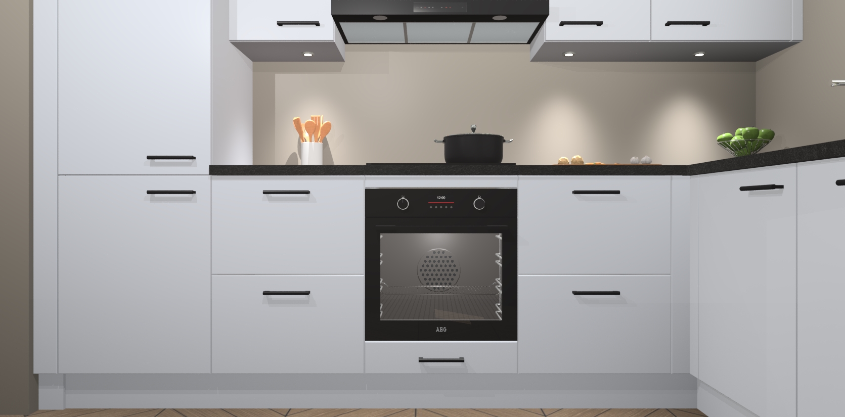 De Sneeuwwitte keuken Geneve is uitgerust met 5 inbouwapparaten - een oven, inductiekookplaat, afzuigkap, vaatwasser en koelkast - voor al uw kook- en bewaarbehoeftes. U kunt deze apparaten desgewenst eenvoudig upgraden naar AEG of de oven omruilen voor een combimagnetron na het plaatsen van uw bestelling. En met de soft close deuren, voldoende opbergruimte en kasten die voorgemonteerd worden geleverd, bent u in een mum van tijd klaar om heerlijke maaltijden te bereiden!