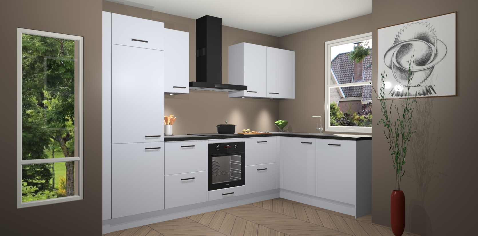 De Sneeuwwitte keuken Geneve is precies wat u nodig heeft als u op zoek bent naar modern design, versmolten met tijdloze schoonheid. De strakke afwerking voegt klasse toe terwijl het toch een uitnodigende sfeer behoudt; zeker om zowel gasten als uzelf te inspireren om in stijl te gaan koken! En nog beter, het zal uw budget niet breken - dus waarom wachten? Met de Sneeuwwitte keuken Geneve bent u verzekerd van kwaliteit zonder in te leveren op de prijs!