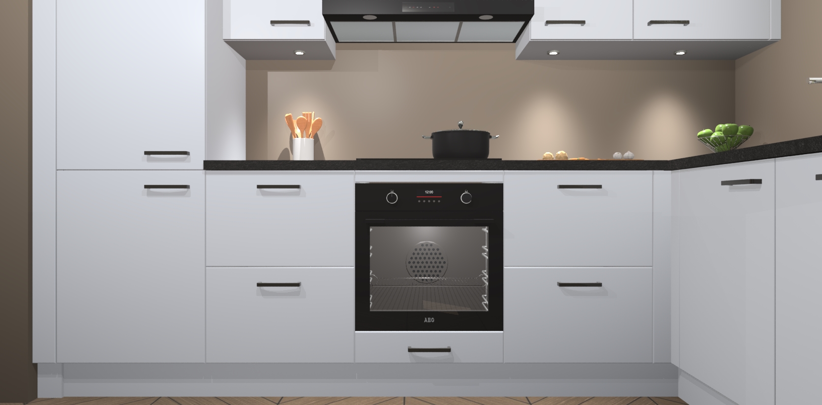 De Sneeuwwitte keuken Geneve is uitgerust met 5 inbouwapparaten - een oven, inductiekookplaat, afzuigkap, vaatwasser en koelkast - voor al uw kook- en bewaarbehoeftes. U kunt deze apparaten desgewenst eenvoudig upgraden naar AEG of de oven omruilen voor een combimagnetron na het plaatsen van uw bestelling. En met de soft close deuren, voldoende opbergruimte en kasten die voorgemonteerd worden geleverd, bent u in een mum van tijd klaar om heerlijke maaltijden te bereiden!