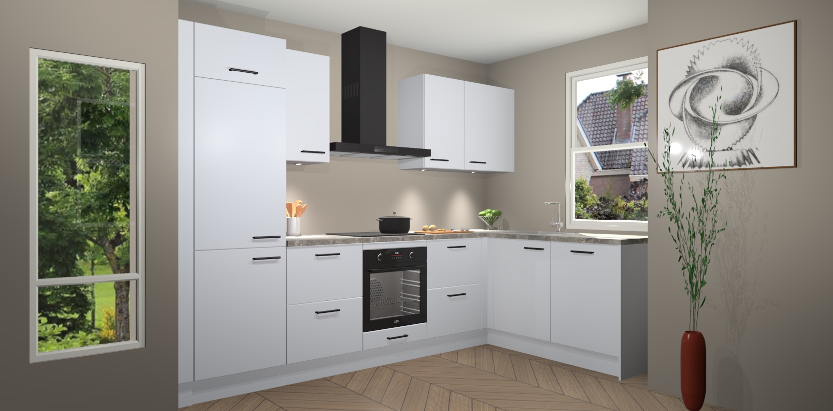 De Sneeuwwitte keuken Geneve is precies wat u nodig heeft als u op zoek bent naar modern design, versmolten met tijdloze schoonheid. De strakke afwerking voegt klasse toe terwijl het toch een uitnodigende sfeer behoudt; zeker om zowel gasten als uzelf te inspireren om in stijl te gaan koken! En nog beter, het zal uw budget niet breken - dus waarom wachten? Met de Sneeuwwitte keuken Geneve bent u verzekerd van kwaliteit zonder in te leveren op de prijs!
