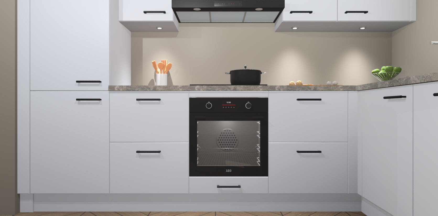 De Sneeuwwitte keuken Geneve is uitgerust met 5 inbouwapparaten - een oven, inductiekookplaat, afzuigkap, vaatwasser en koelkast - voor al uw kook- en bewaarbehoeftes. U kunt deze apparaten desgewenst eenvoudig upgraden naar AEG of de oven omruilen voor een combimagnetron na het plaatsen van uw bestelling. En met de soft close deuren, voldoende opbergruimte en kasten die voorgemonteerd worden geleverd, bent u in een mum van tijd klaar om heerlijke maaltijden te bereiden!