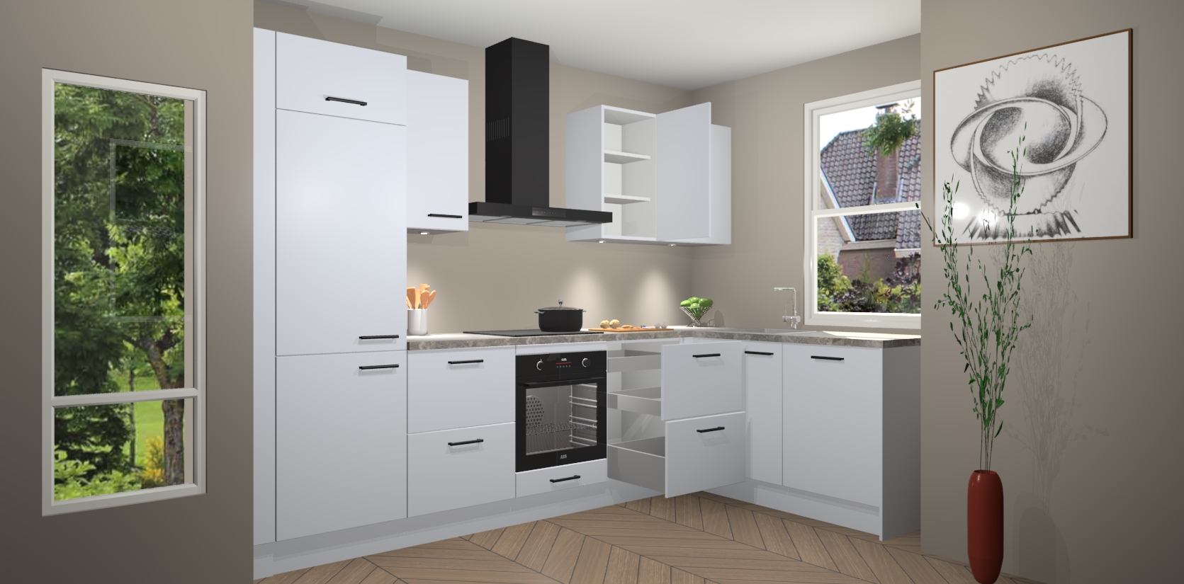Bent u op zoek naar een moderne en tijdloze keuken die schoonheid in uw huis brengt? Zoek dan niet verder dan de Sneeuwwitte keuken Geneve - de perfecte keuken voor al uw wensen. Deze hoekkeuken biedt de hoogste Duitse kwaliteit voor een vaste lage prijs en is zeker een blikvanger in uw huis!