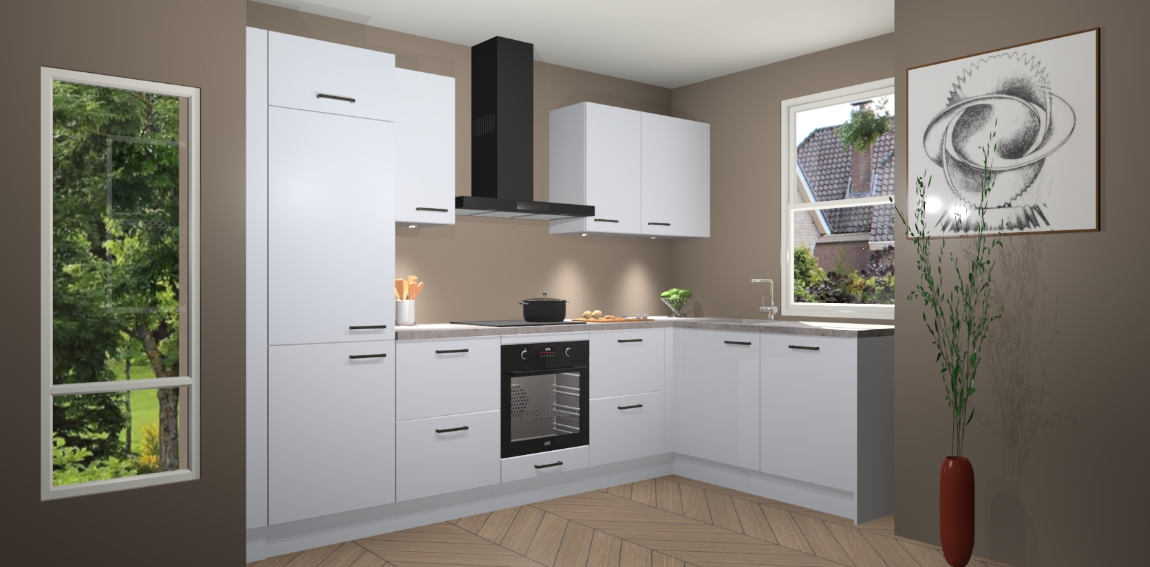 De Sneeuwwitte keuken Geneve is precies wat u nodig heeft als u op zoek bent naar modern design, versmolten met tijdloze schoonheid. De strakke afwerking voegt klasse toe terwijl het toch een uitnodigende sfeer behoudt; zeker om zowel gasten als uzelf te inspireren om in stijl te gaan koken! En nog beter, het zal uw budget niet breken - dus waarom wachten? Met de Sneeuwwitte keuken Geneve bent u verzekerd van kwaliteit zonder in te leveren op de prijs!